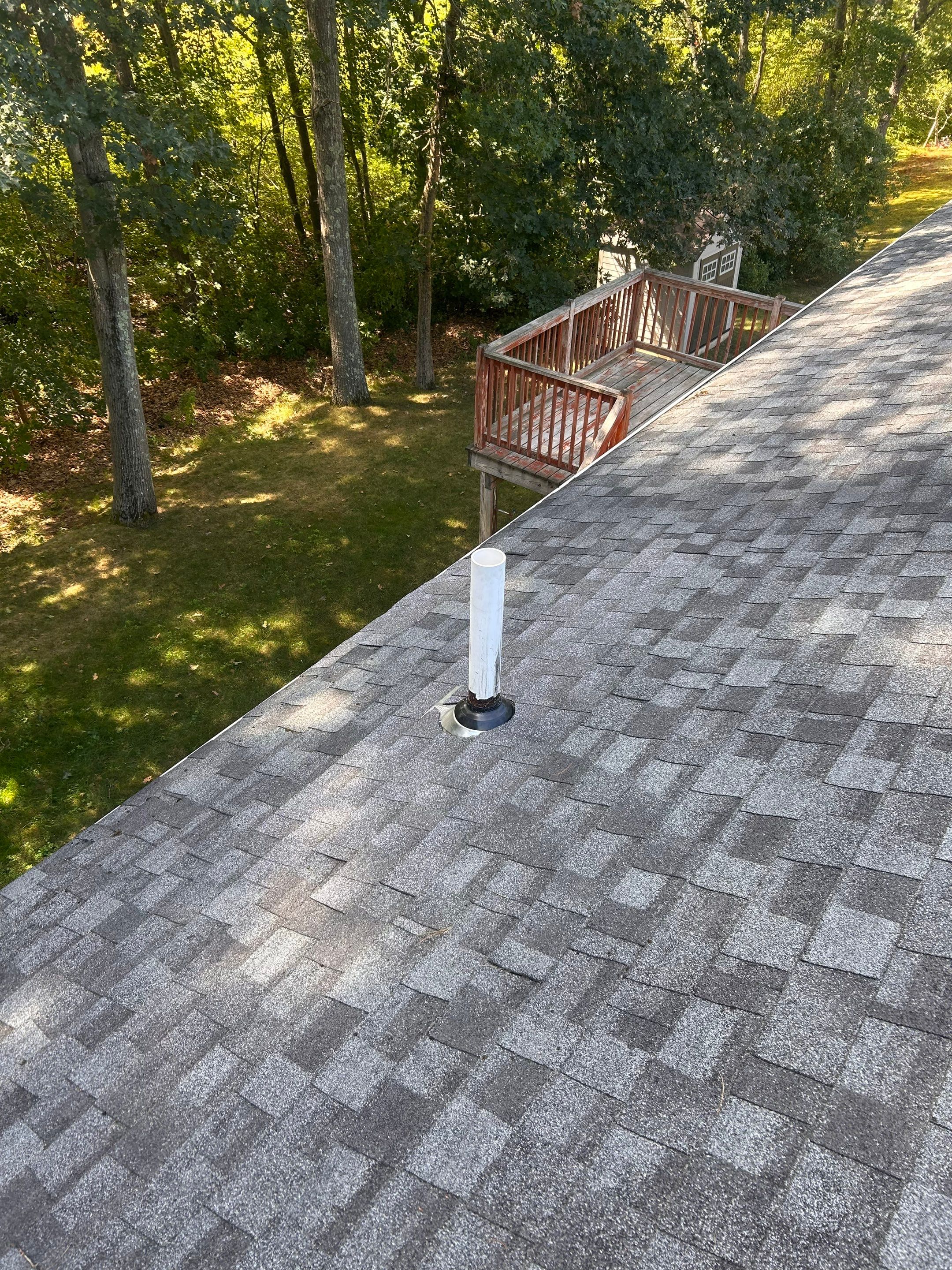 Comprehensive attic ventilation and roof detail upgrade featuring removal of old ridge vent and installation of new Owens Corning VentSure 4' strip ridge vent with 1" continuous opening on each side for optimal airflow, complete attic baffle installation in every rafter bay from eave to ridge ensuring unobstructed airflow path (baffles stapled securely with insulation adjustment), lifetime pipe boot replacement on plumbing vent stack with watertight integration, and complete chimney reflashing with new metal flashing (copper or aluminum) including step flashing integrated with shingles and counter flashing ground into masonry joints with high-temp sealant. Ridge decking inspection included with cleaning and prep. Professional installation ensures balanced attic ventilation when paired with existing soffit vents, prevents moisture buildup, extends roof life, and eliminates leak points at penetrations. Backed by 5-year workmanship warranty plus manufacturer warranties on VentSure and lifetime pipe boot. Estimated price: $4,639 in Tewksbury, MA 01876.