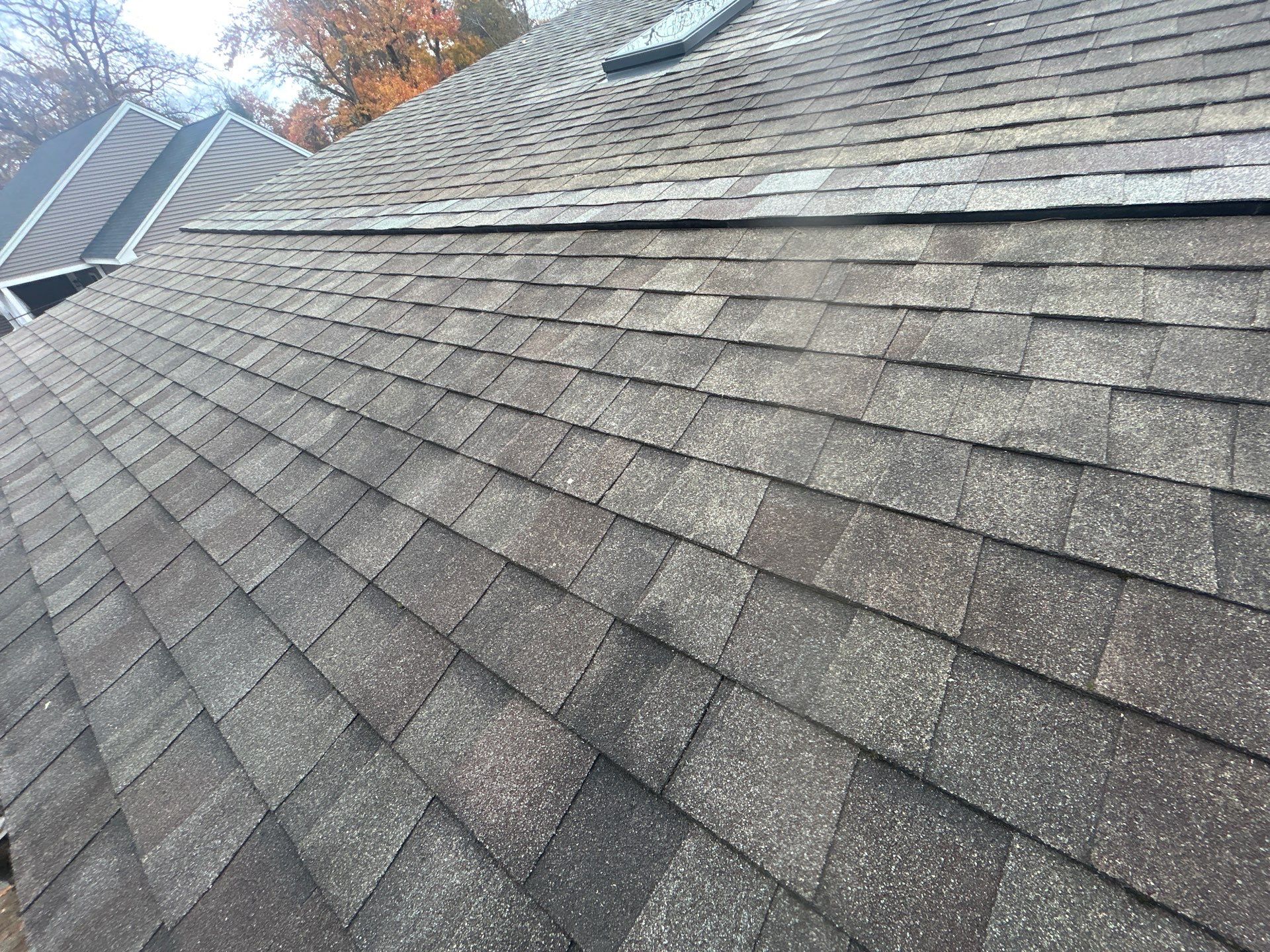 Professional skylight leak repair featuring removal of existing leaking skylight and installation of new Velux solar-powered skylight with complete reflashing system including ice and water barrier protection around deck opening. Project addresses critical ventilation deficiency by installing 18 linear feet of VentSure ridge vent with 20 feet of color-matched ridge caps, plus approximately 18 feet of new intake ventilation along ridge to create balanced attic airflow system (current roof had no intake or exhaust ventilation). All shingles color-matched to existing roof for seamless appearance. Deck repairs included as needed for rotted plywood. Solar-powered skylight requires no electrical work. Includes 5-year workmanship warranty on all touched areas. Estimated price: $5,299 in Tewksbury, MA 01876.