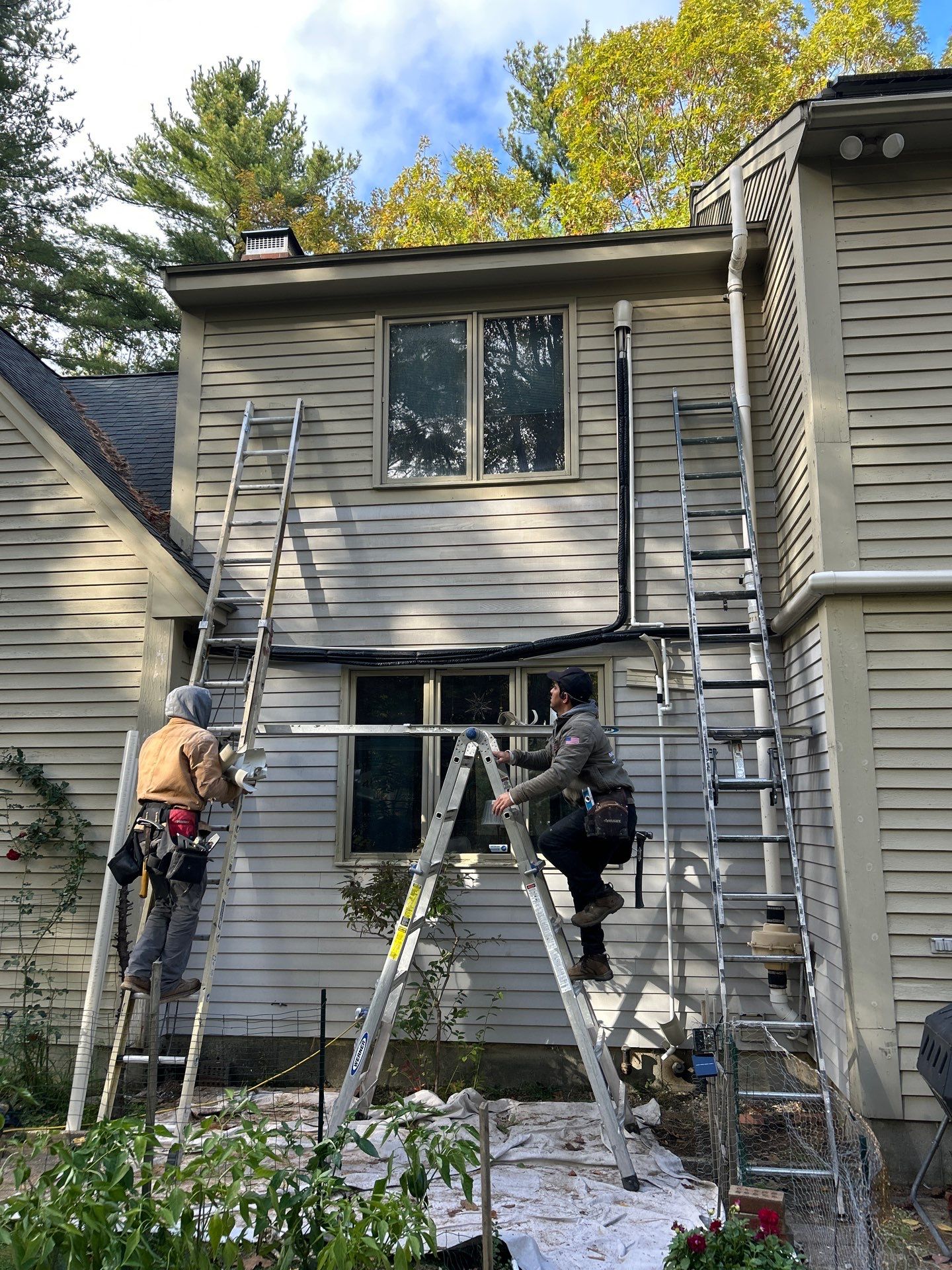 This Pepperell, MA siding restoration focused on repairing and refinishing a damaged section at the back of the home while upgrading the front elevation with new wood clapboard siding for a timeless look. Our team began by removing all damaged siding, inspecting the sheathing beneath, and applying a Tyvek weather-resistant barrier for moisture control. The new primed and sealed wood clapboard siding was installed with care, ready for painting to blend seamlessly with the home’s character. We enhanced trim details by adding PVC 5/4x5 corner boards and custom aluminum window wraps for clean, durable finishes. Electrical fixtures and meters were safely detached and reinstalled by a licensed electrician to ensure compliance and safety. All debris was removed at completion, leaving the property clean and protected — and the installation backed by a 5-Year Craftsmanship Warranty and Lifetime Material Warranty for peace of mind.