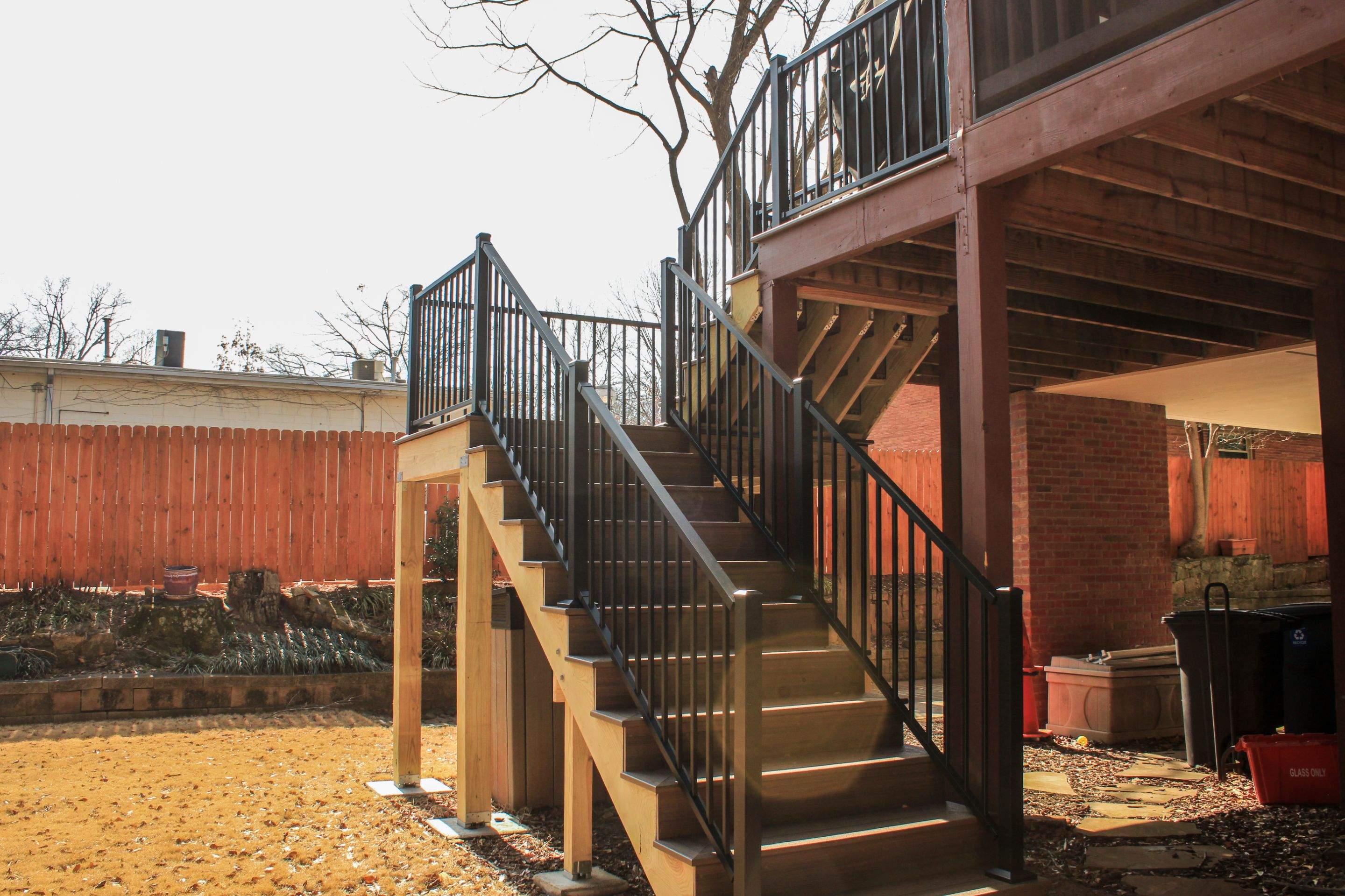 This was a deck resurface using Trex Enhance Natural Series products and Deckorators ALX Contemporary Railing.