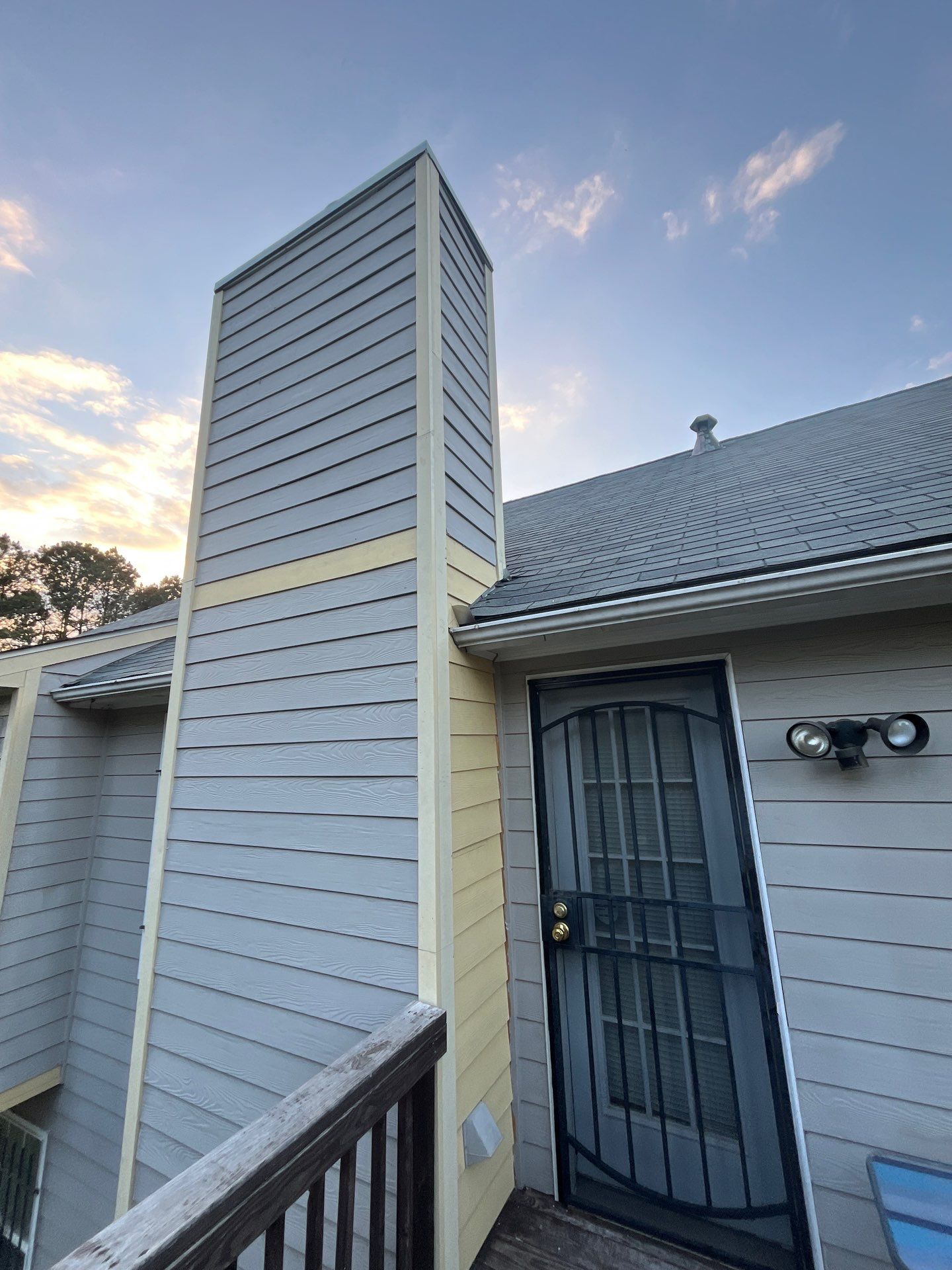 We replaced rotten wood on the back side of the home near the windows, deck level back door, chimney, and lower entry door.