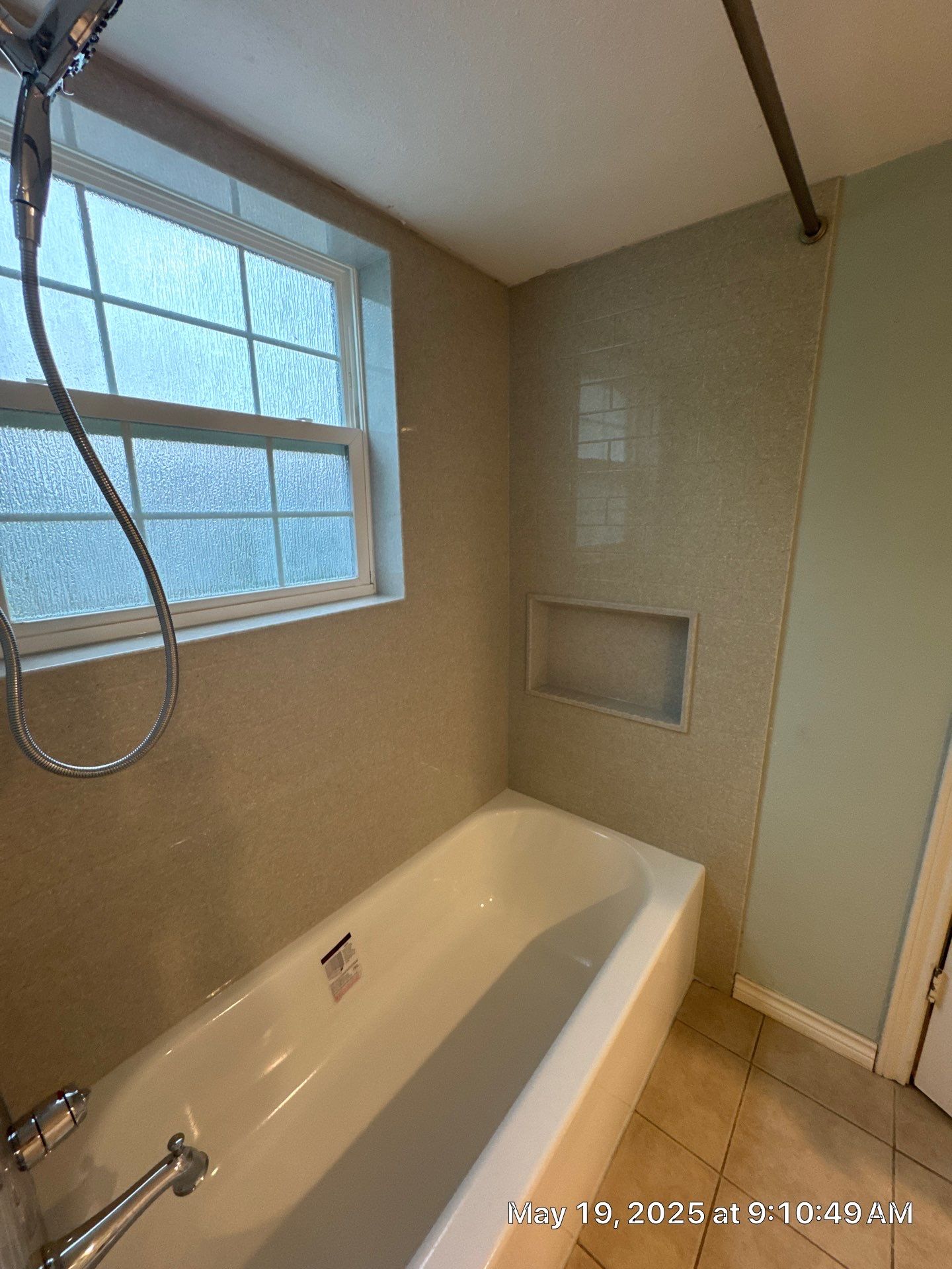 This is a rental unit for one of our customers. We removed the Old Tub and tile walls. Installed a new tub and Onyx collection solid surface shower walls. The project was 3 days long. Quick turn around means the unit was able to be listed for rent quickly.