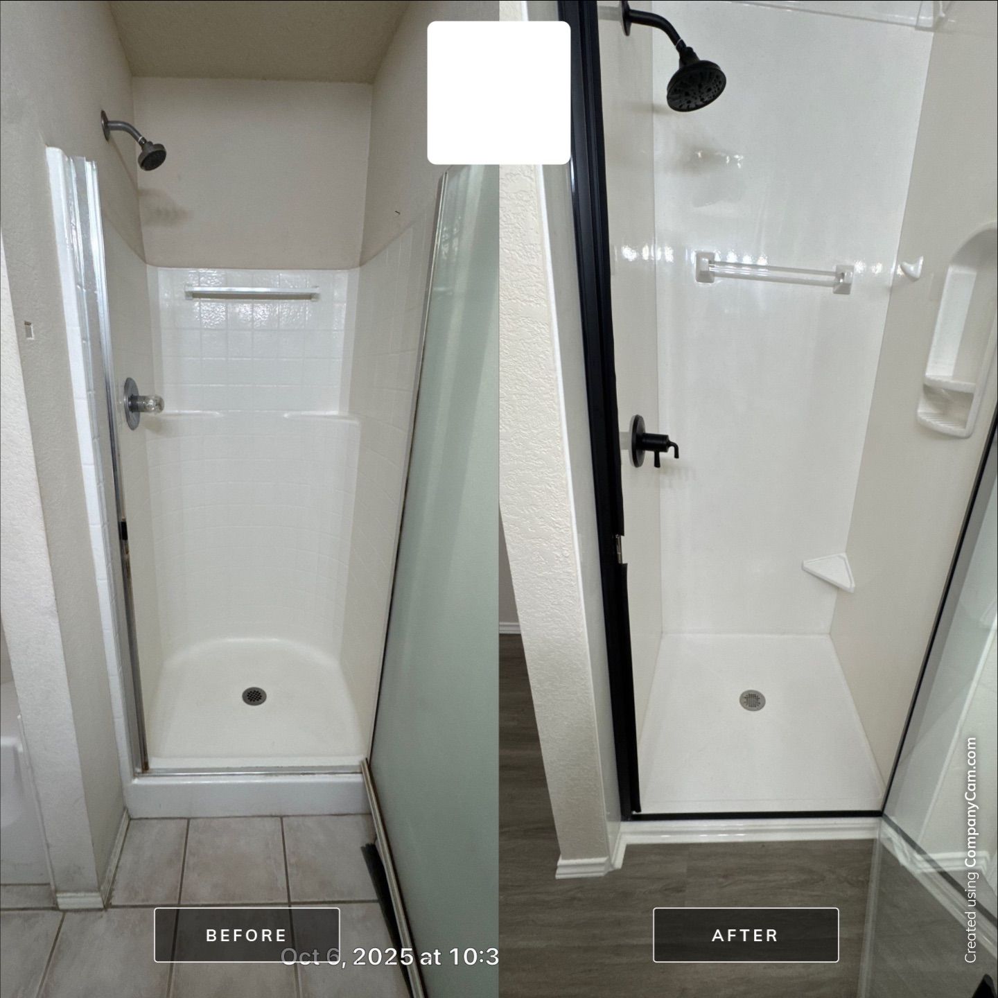 This customer wanted their unused Tub removed and the space left open for a piece of furniture they plan to put in the tub space. We removed the window from the wall as well. The Shower is a new Onyx shower with Onyx Crown molding at the top as well as Delta Fixtures and a Semi Frameless Glass door. We installed all new LVP flooring, a new toilet,exhaust fan and more. The Vanity Top is from Thinscape.