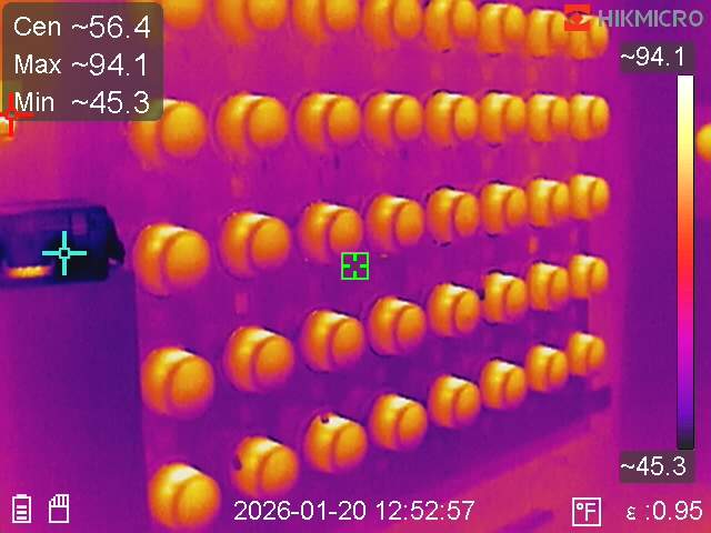 Using our Thermal Camera, we were able to diagnose heat and corrosion issues inside the electrical meter bank. We cleaned, lubricated, and repaired the corrosion on the bus bars and breakers. We replaced rusted breakers that were problamatic.
