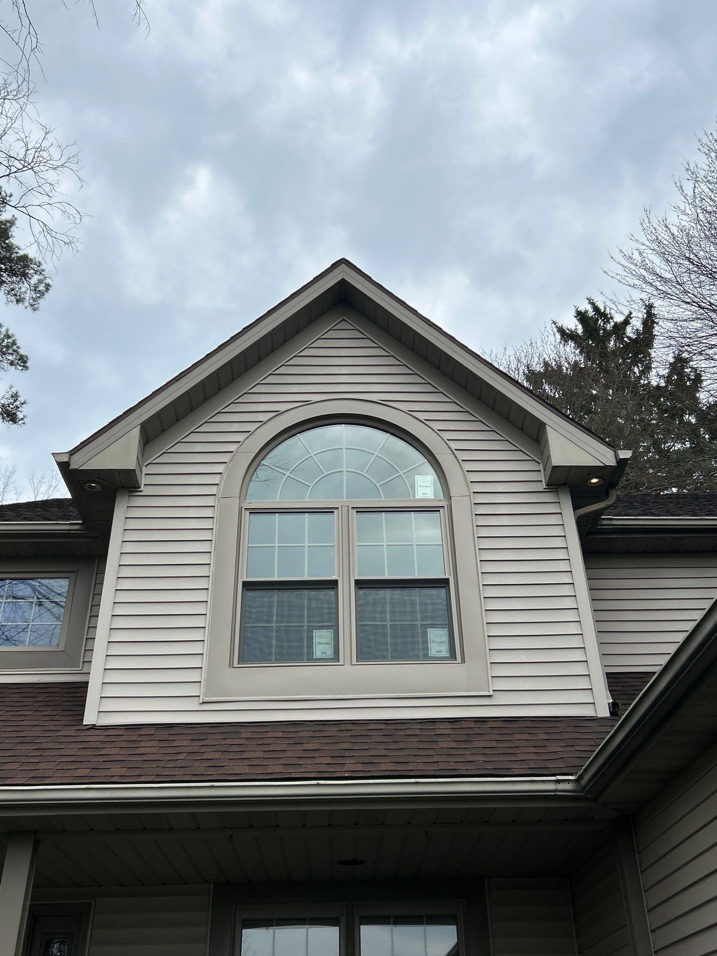 We recently completed a comprehensive window replacement project for this two-story home in Massillon. New clay Provia Endure double hung with a half round with clay exterior cladding with new j channel