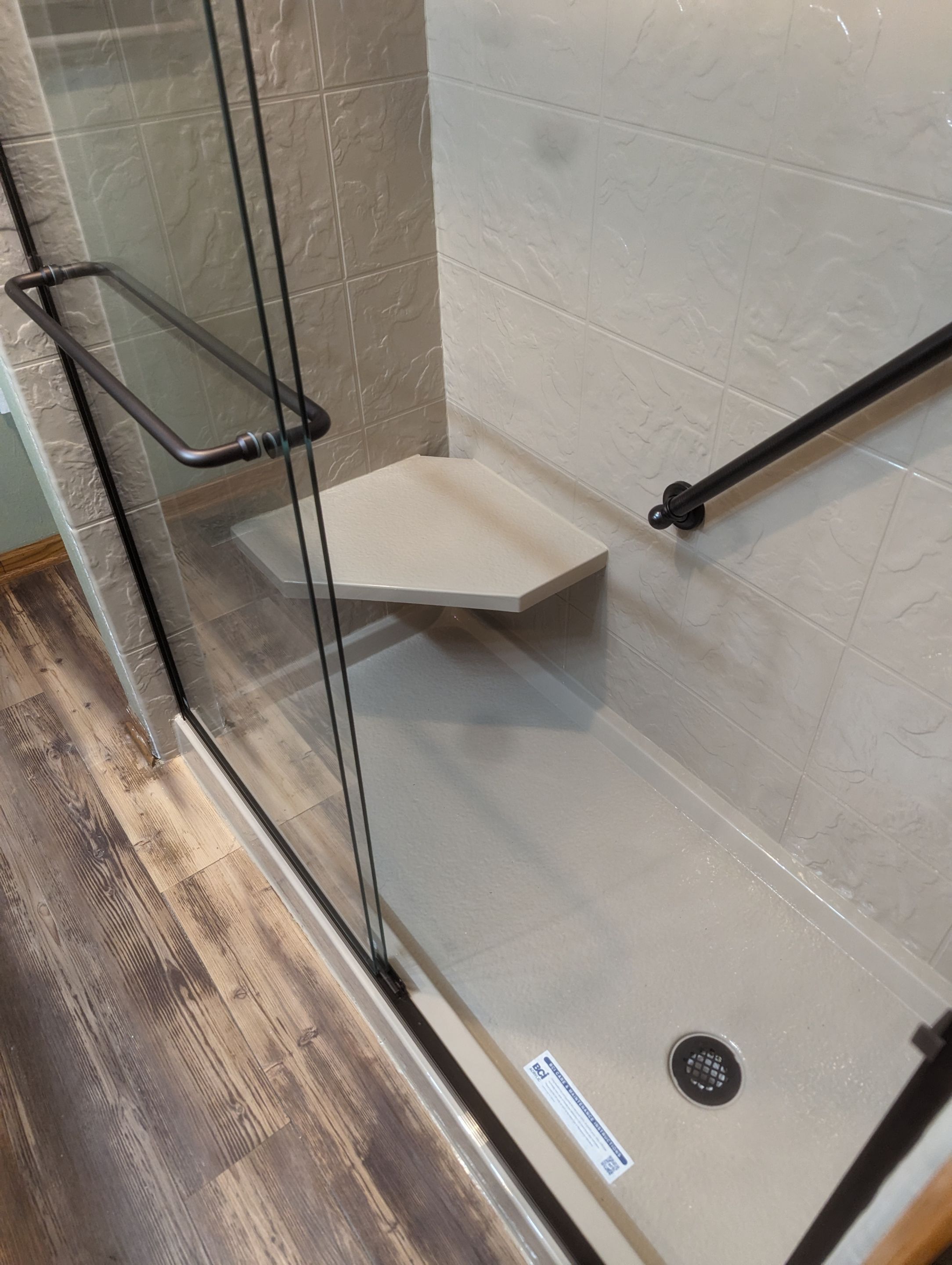 Corner Seat, Grab Bar, Classic Bypass Slider, Tub to Shower Conversion