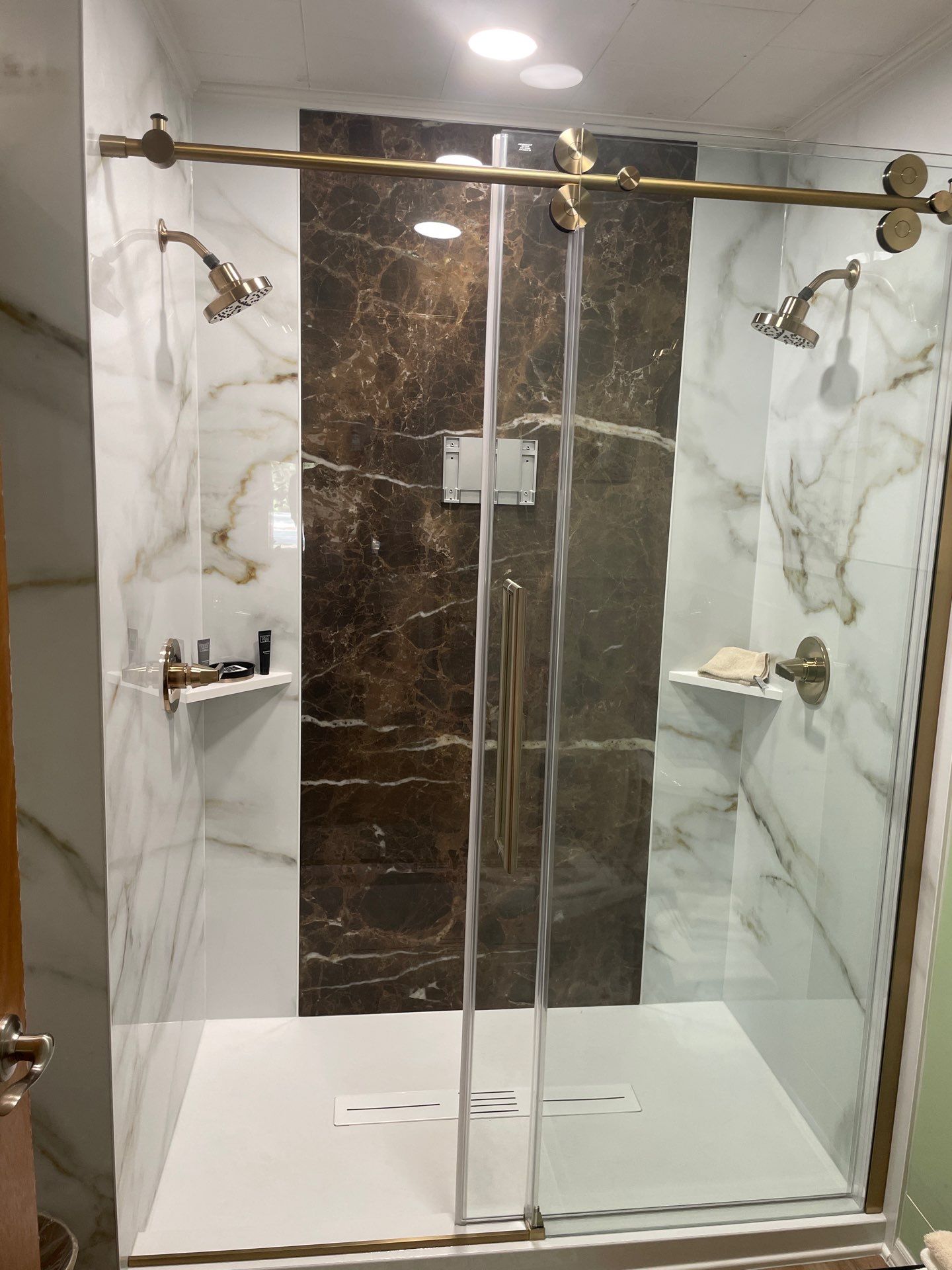 Barn Door Slider, Corner Shelf, Tub to Shower Conversion