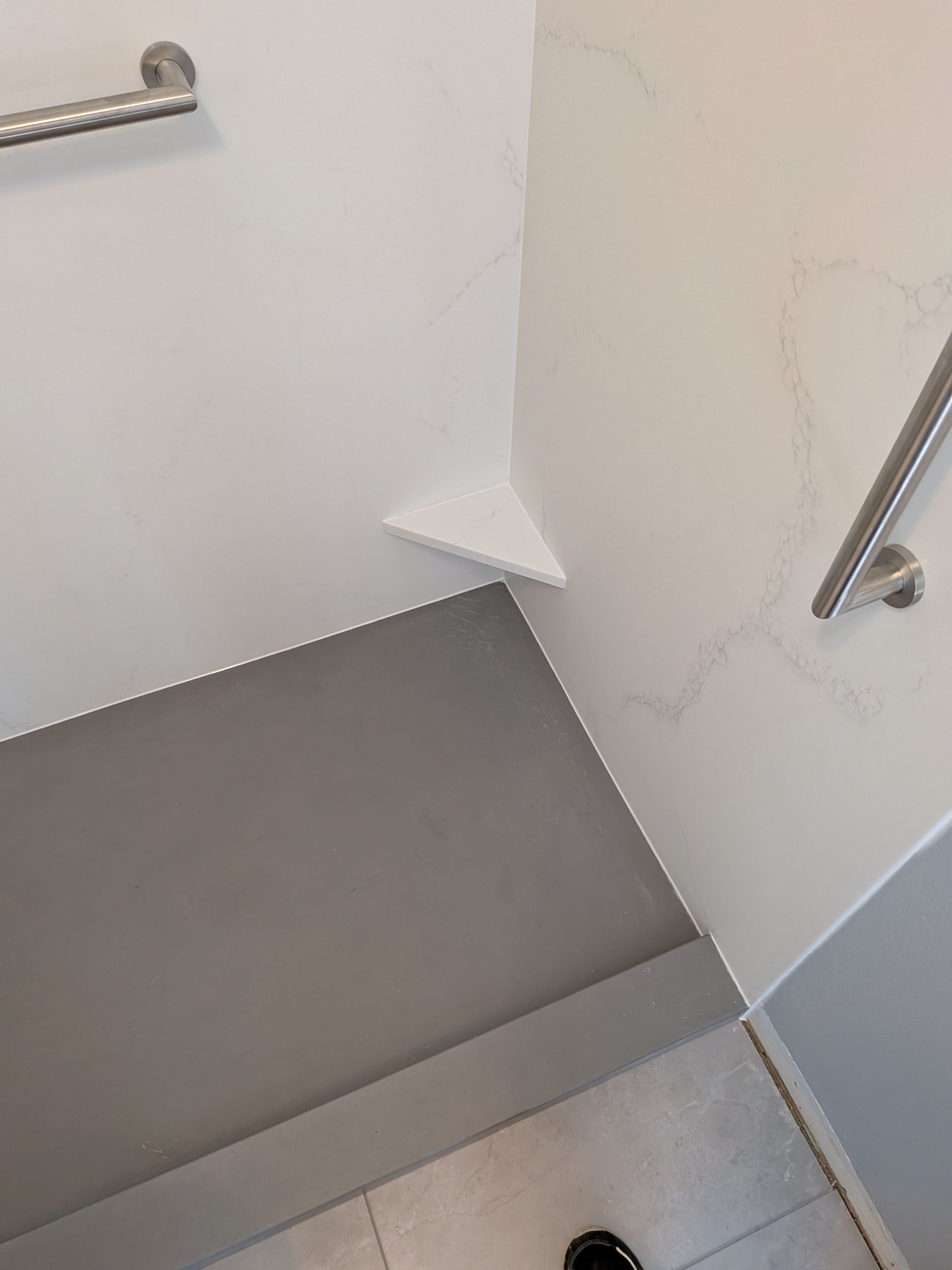 Corner Foot Rest, Corner Shelf, Grab Bar, Tub to Shower Conversion