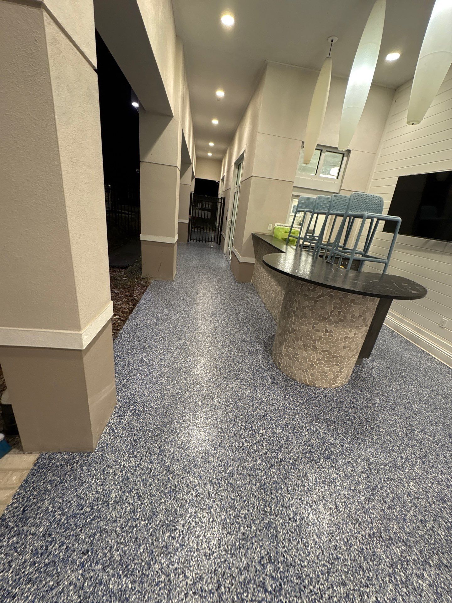 For this high-traffic commercial space, durability was non-negotiable. We installed our Orbit flake system to provide a seamless, impact-resistant surface that can handle heavy equipment and constant foot traffic. The cool-toned Orbit blend not only hides debris but provides a bright, professional aesthetic that elevates the entire facility.