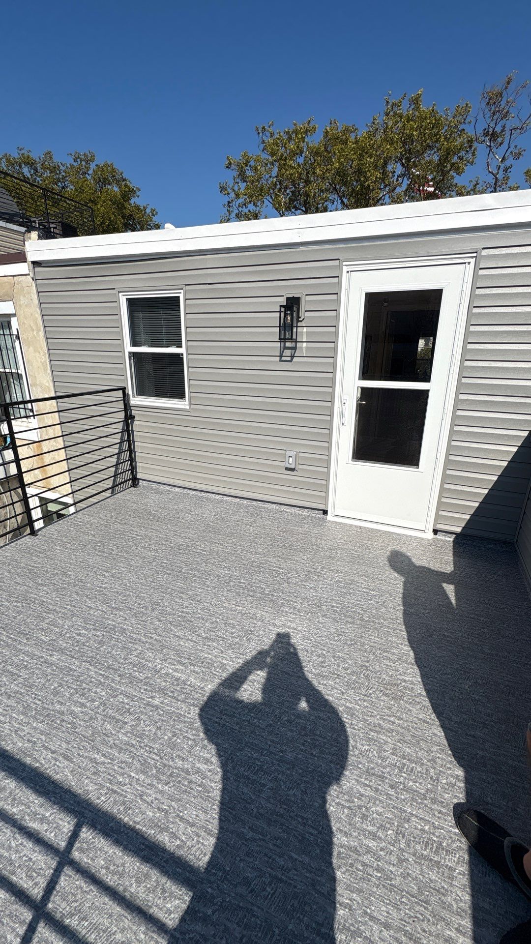 Total remediation of all stucco and Fiberglass Deck on the back wall. This 1920s home had many make overs and additions that had been added on over the years. Upon removal of the Fiberglass roof-deck and stucco on the back(over wood framing) we uncovered unforeseen issues with the structure /Framing. We had to replace all the plywood on the walls and the Roof before installing the New Vinyl siding And Duradek. Castlestone siding, mountain quartz duradek, clam shell trex step,Blueskin & Hyrdogap underlayment, Custom Railing
