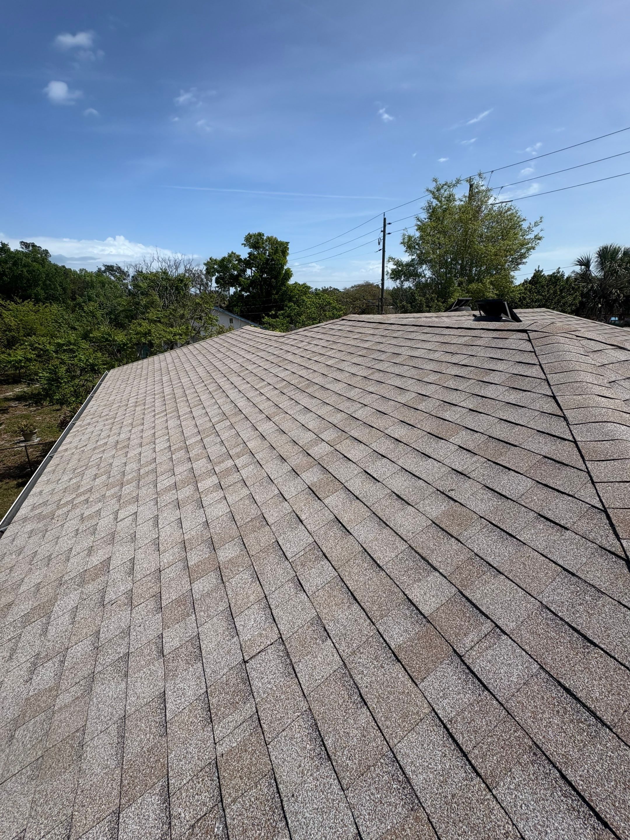 Upgrade your home with a high-performance roofing system featuring a shingle roof replacement in Sun-Cool® Sand Pinnacle® along with the addition of two solar-powered roof fans—a perfect blend of style, efficiency, and ventilation. The Sun-Cool® Sand Pinnacle® architectural shingles offer a warm, neutral tone that enhances curb appeal with a soft, sun-washed look. Designed with advanced reflective technology, these shingles help reduce heat absorption, keeping your roof cooler and improving overall energy efficiency—ideal for hot, sunny climates. To further boost performance, two solar-powered roof fans have been installed to actively ventilate the attic space. These energy-efficient fans help remove excess heat and moisture, reducing strain on your HVAC system, extending the life of your roof, and improving indoor comfort—all without adding to your energy bill. This combination creates a roofing system that not only looks great but also works smarter to protect your home and lower long-term costs. Key Features: Sun-Cool® Sand Pinnacle® shingles for a bright, coastal-inspired appearance Solar-reflective technology to reduce roof temperatures Two solar-powered fans for improved attic ventilation and moisture control Enhanced energy efficiency and indoor comfort Durable, weather-resistant materials for long-lasting protection Clean, professional installation with a polished finish Transform your home with a roofing solution that delivers modern style, smart energy performance, and reliable protection from the elements.