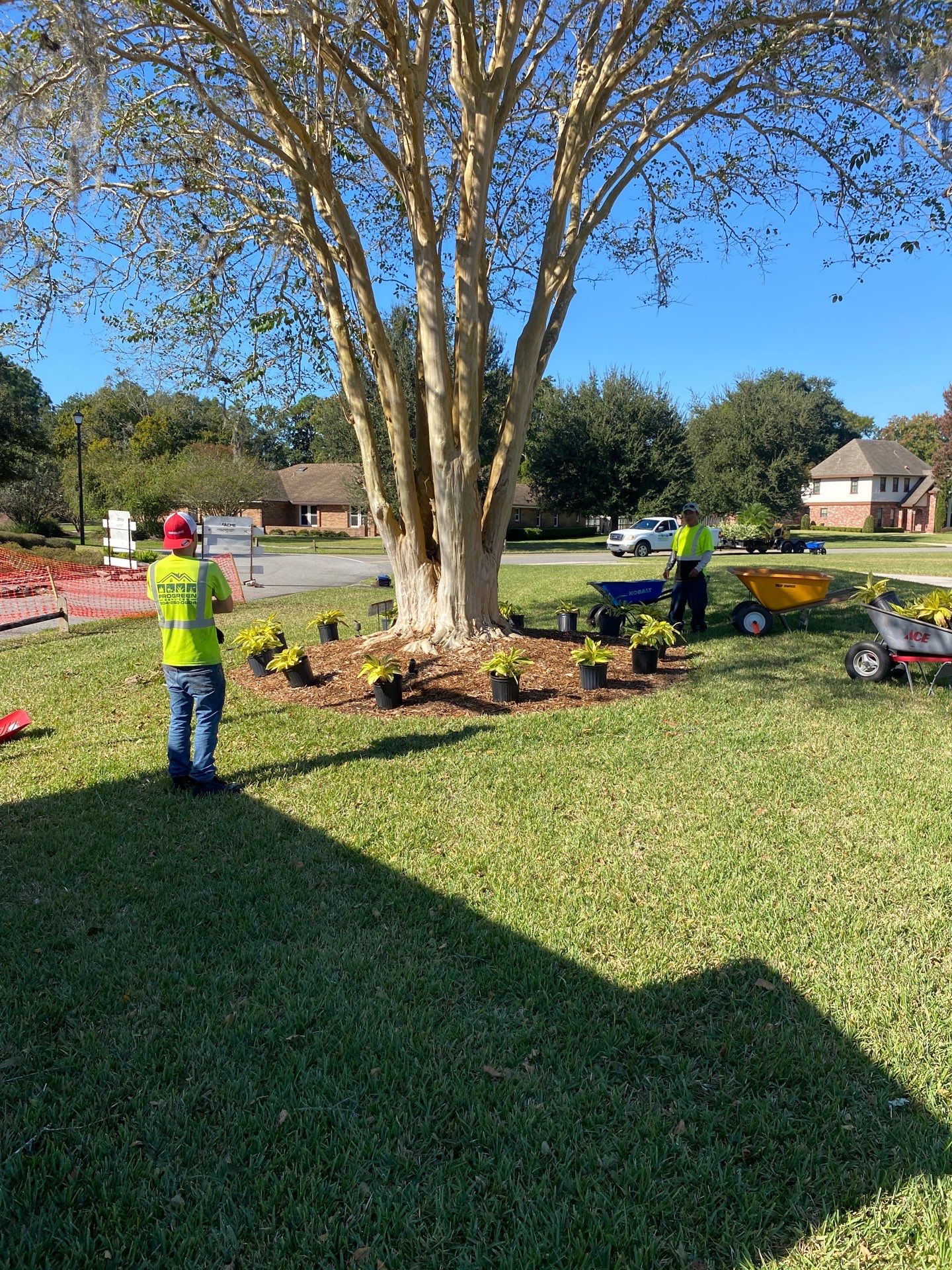 This was an all day affair that included new mulch, lots of plants and fresh sod. Always fun working in Deerwood!