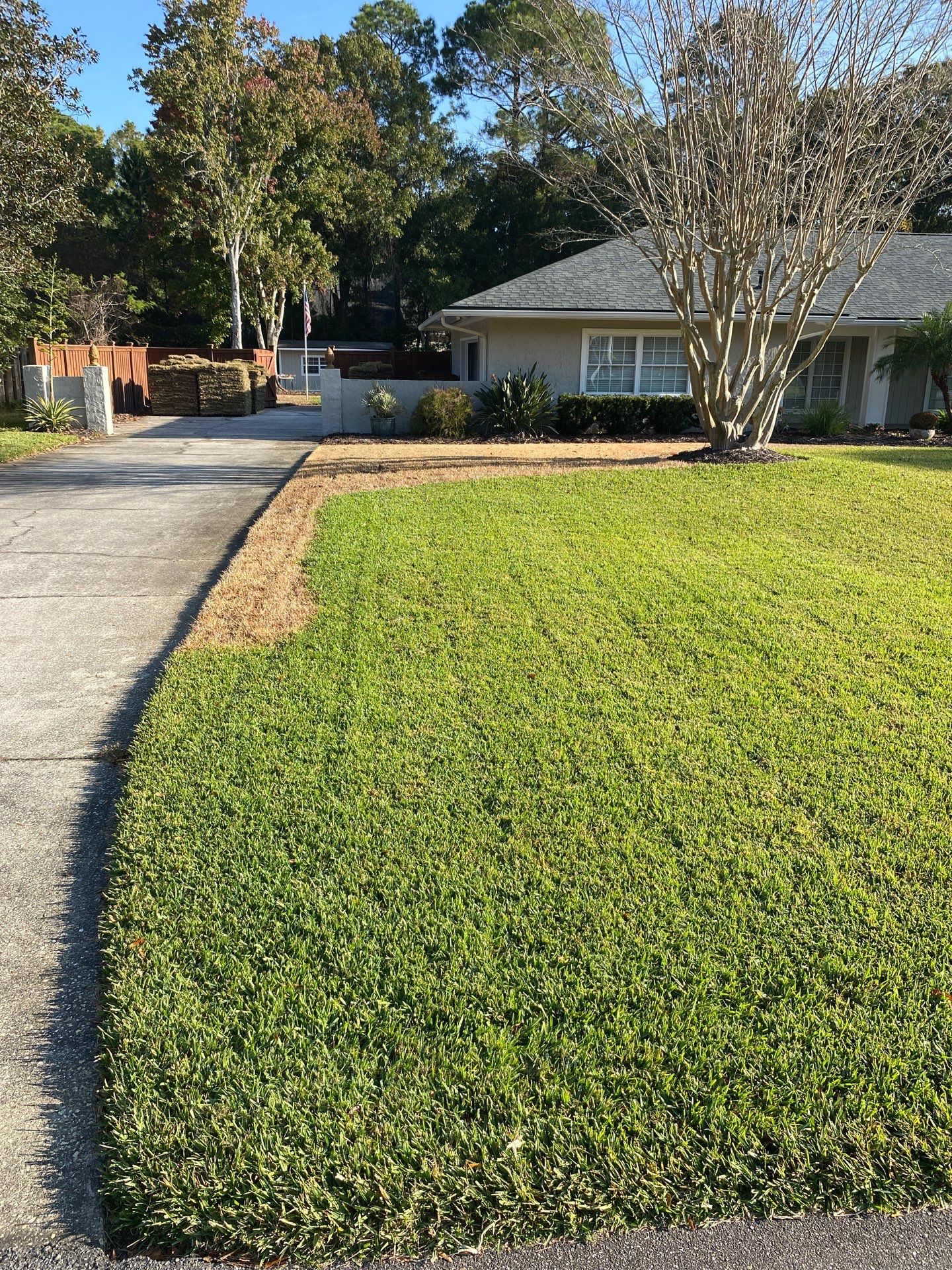 This resident needed about 7 pallets of fresh-cut St. Augustine grass replaced due to weeds. The sod that we put down had been bit by frost a little bit but was still viable. We are confident that this grass will pull through. If not, we replace it!