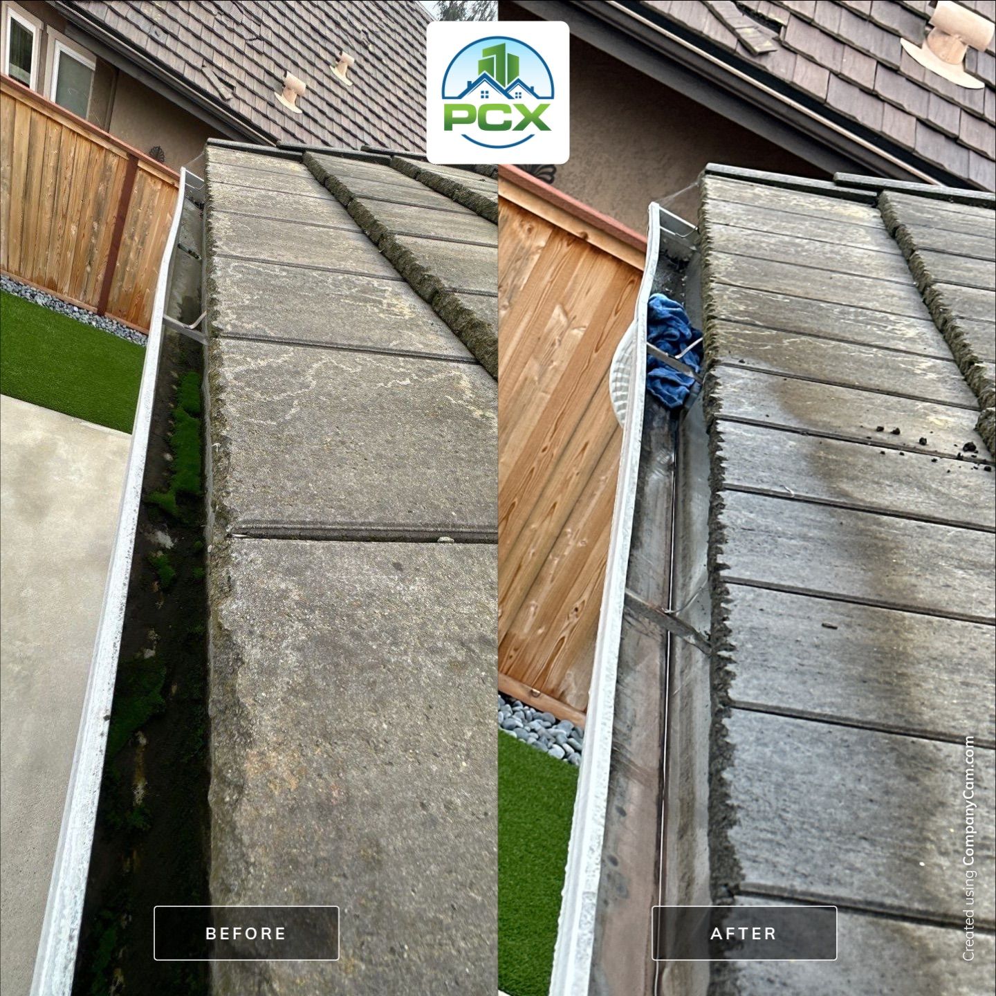 These homeowners called to get their rain gutters cleaned before any potential rain comes in. For the most part, the gutters were working as designed, but nothing could prepare me for what I’d find up there. There were roofing tools and clamps that were somehow left IN THE GUTTERS! The tools caused minor blockages which we were able to clear by hand and some air blowing. Down on the first floor, you could tell that the gutters were sloped the wrong way evidenced by the enormous moss buildup that was cleared. This mess required a flush to clear all the mud from the gutter. After a quick ground cleanup, we left this home’s gutters spic and span and onto the next!