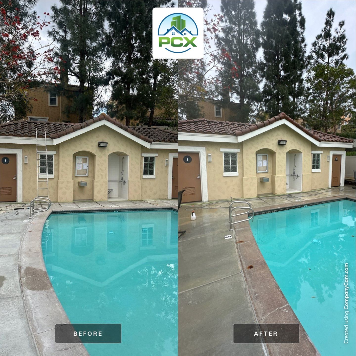 After seeing the results we've been able to achieve on similar roofs, the board of this community jumped on the opportunity to have us pressure wash the roof of their common area pool restroom. Smiles were made