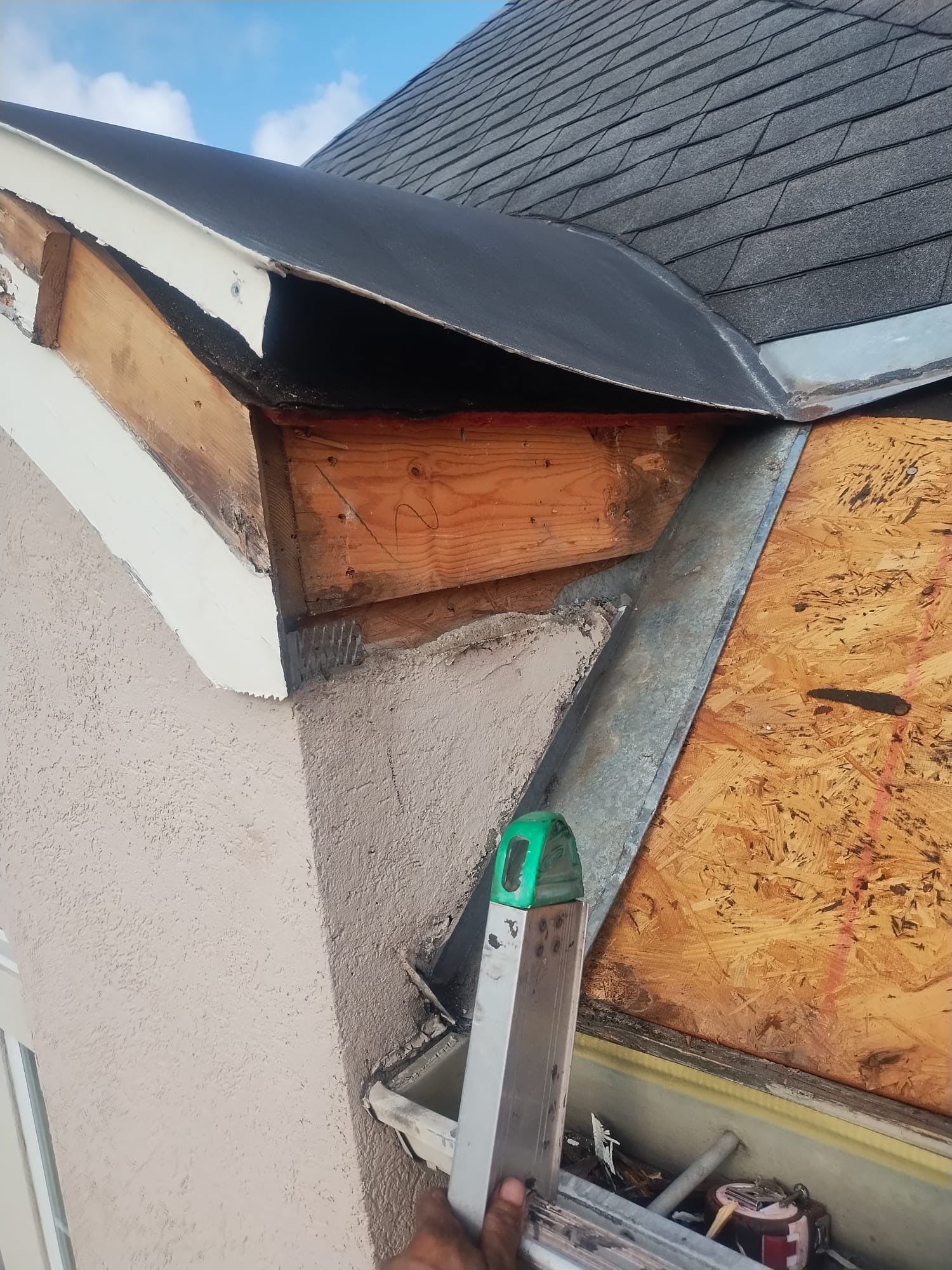Project Summary The customer had a roof leak. We repaired the damaged roof valley along with the surrounding affected areas, including the fascia. The repair required removing materials down to the plywood, installing new ice and water shield, new valley metal, new shingles, and completing fascia repairs. All roof repairs were completed successfully.