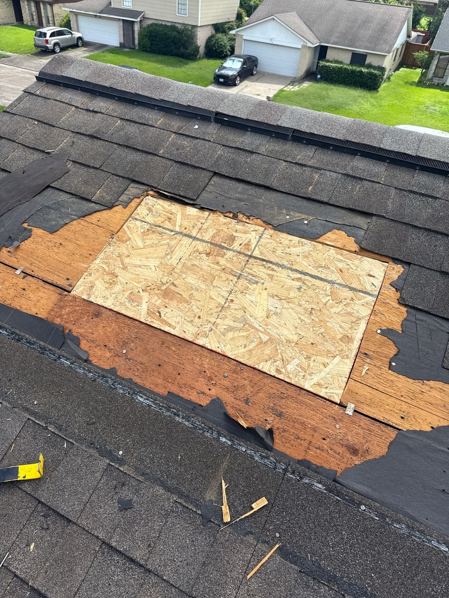 Project Summary: A leaking box vent was identified as the source of the issue. After the roof inspection, the customer took a few days to decide on the repairs, so we assisted with a temporary emergency tarp to prevent further damage. Once the customer was ready, we performed the permanent repairs, which included installing a new box vent, replacing rotted plywood with new plywood, installing new ice and water shield, and replacing shingles in the affected area. Lastly, and most importantly, we completed a full roof maintenance to help ensure a longer-lasting and properly sealed roof.