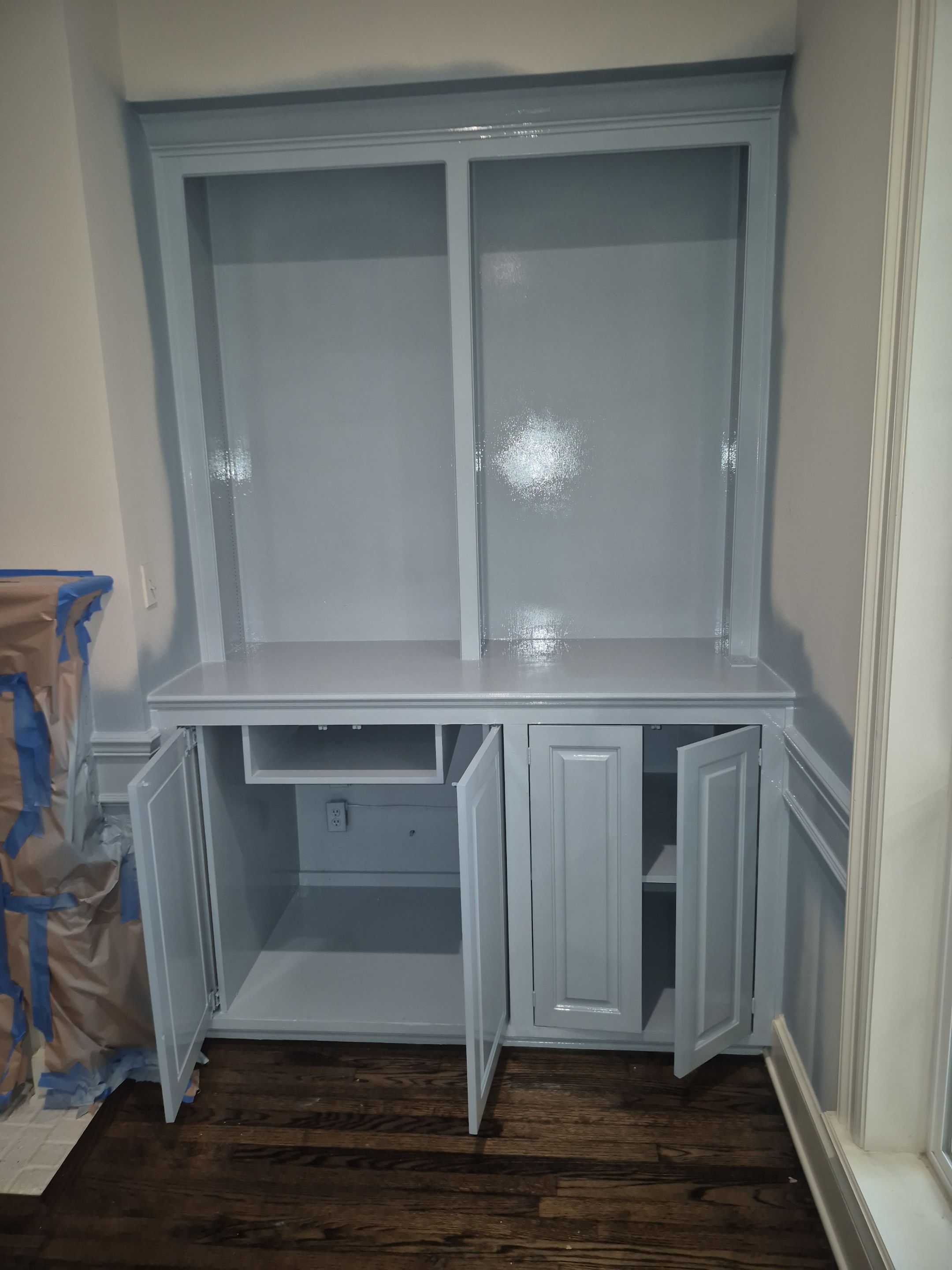 Quality Coats PaintingThis Hollytree project included cabinet painting, and the blue color choice turned out incredible. It added depth and personality to the room while still feeling clean and refined. Projects like this are always fun because a bold cabinet color can completely change the mood of a space without a full renovation. The finished result looks sharp, modern, and full of character.