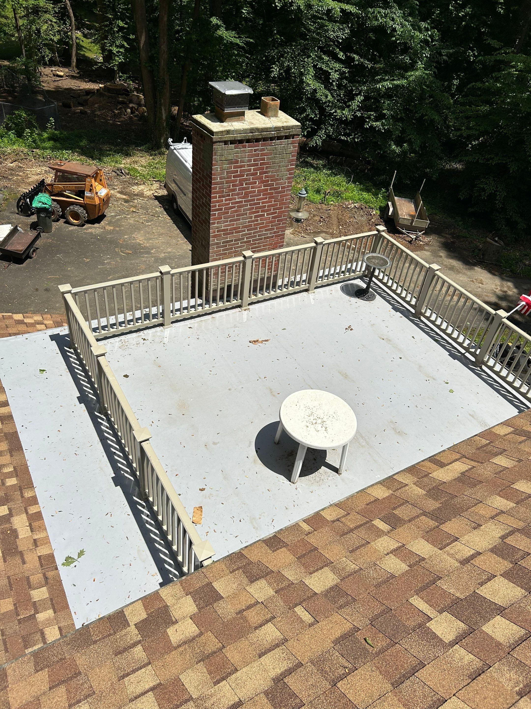 CertainTeed Landmark Pro Designer Shingles in Max Def Resawn Shake Carlisle Syntec TPO Flat Roof in Grey Custom Gutters and Downspouts Deck and Wooden Walkway Reconstruction Brick Retaining Wall Reconstruction