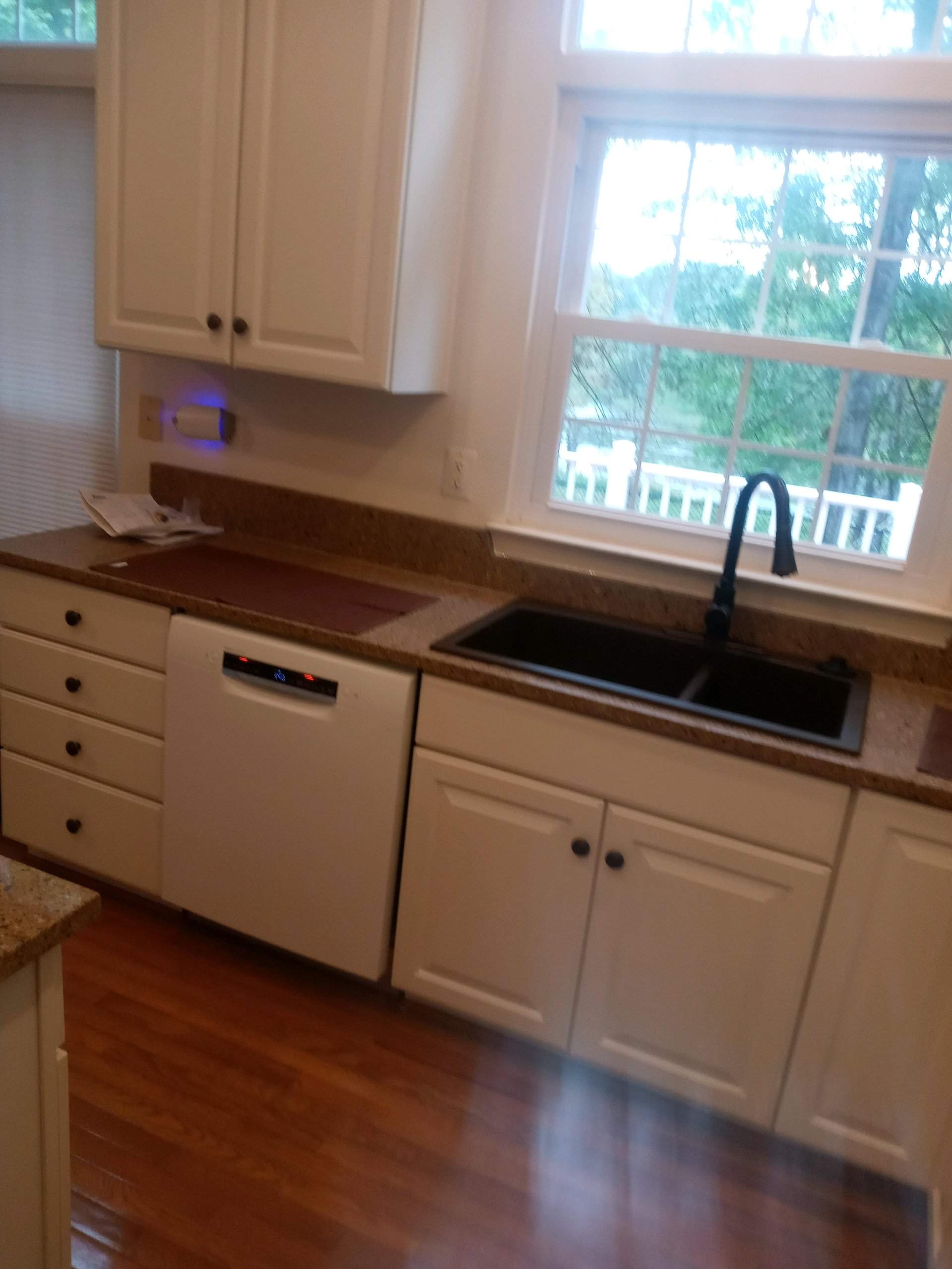 Bright Kitchen Refresh with Updated Appliances & Functional Upgrades. This kitchen renovation focused on improving functionality while maintaining a clean, timeless aesthetic. The project included the installation of new appliances, highlighted by an updated dishwasher and a newly added garbage disposal to enhance everyday convenience and efficiency. A sleek, modern sink and faucet were installed beneath the window, creating a bright and practical workspace with views to the outdoors. Existing cabinetry was refreshed to complement the warm wood flooring and durable countertops, providing ample storage and a cohesive look throughout the space. The appliance upgrades seamlessly integrate into the layout, improving workflow and modernizing the kitchen without compromising its classic charm. This project delivers a practical, user-friendly kitchen designed for daily living and long-term performance.