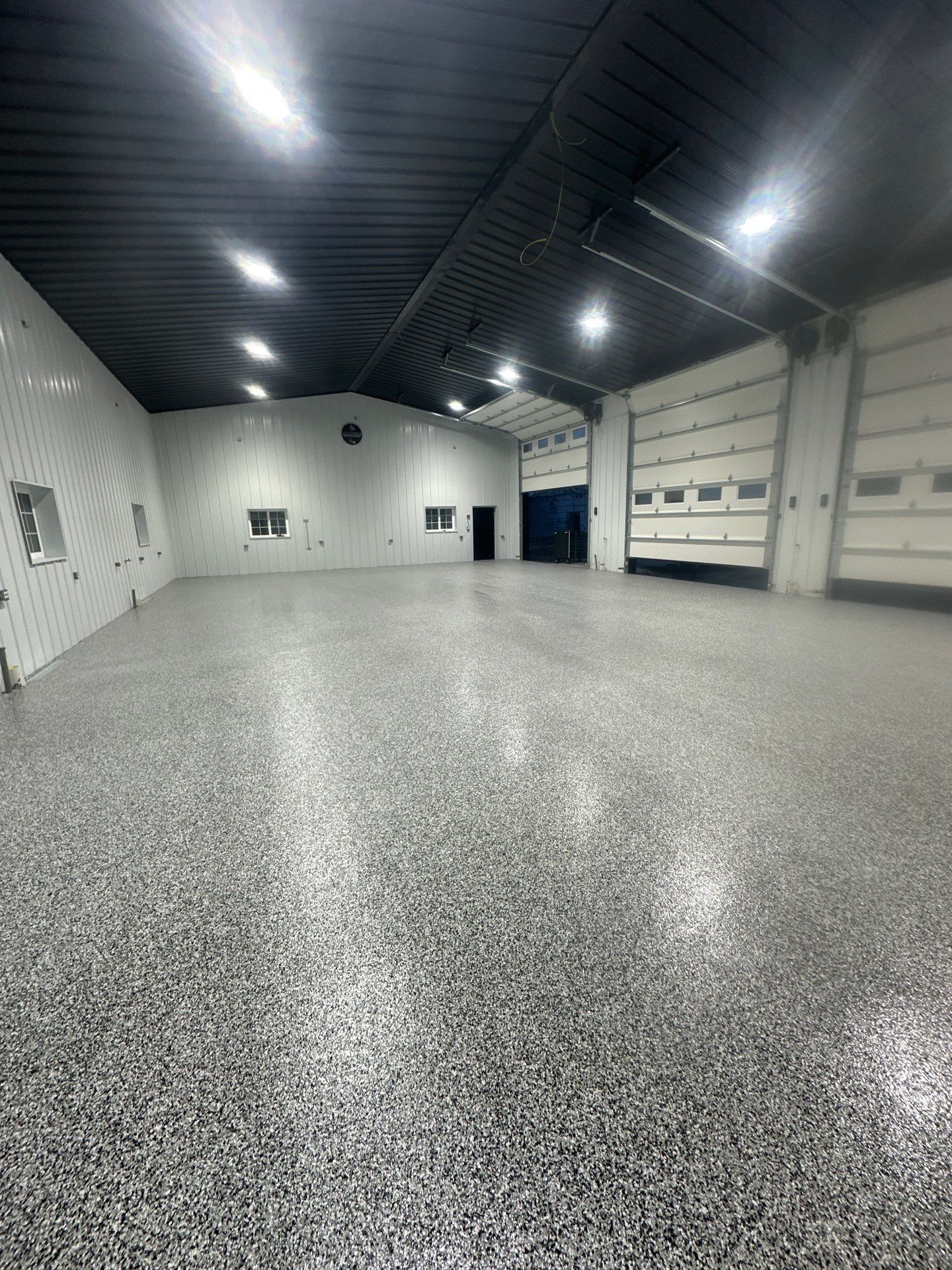 Thank you, Lucas, for choosing Revival Concrete Coatings for your new shop floor coating! We're glad your floors will be protected for anything this shop floor may see, while also turning it into the masterpiece it deserves to be! Domino flake was an excellent choice!