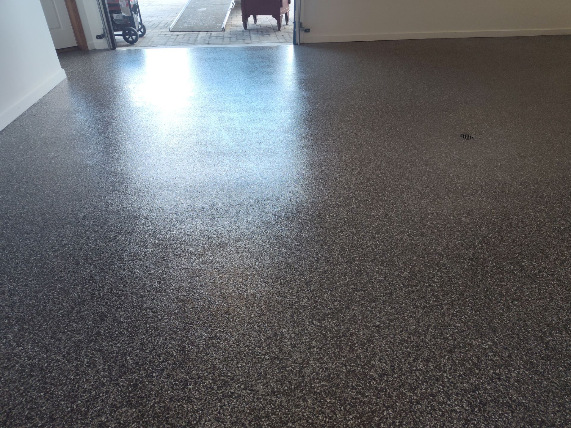 Porch Coating, Garage Epoxy Coating, Garage Floor Coating, Hybrid Flake, Silvercreek Flakes, Claystone Flake