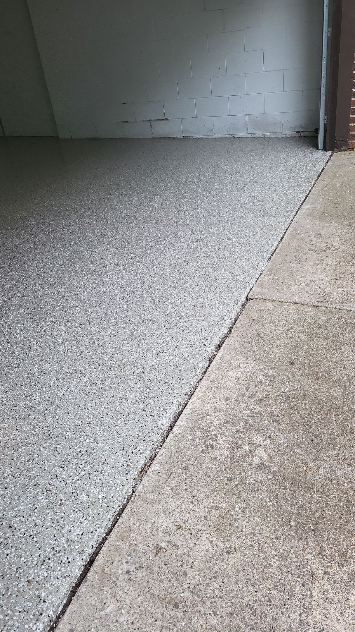 Pebble Beach Flakes, Polyaspartic, Garage Floor Coating