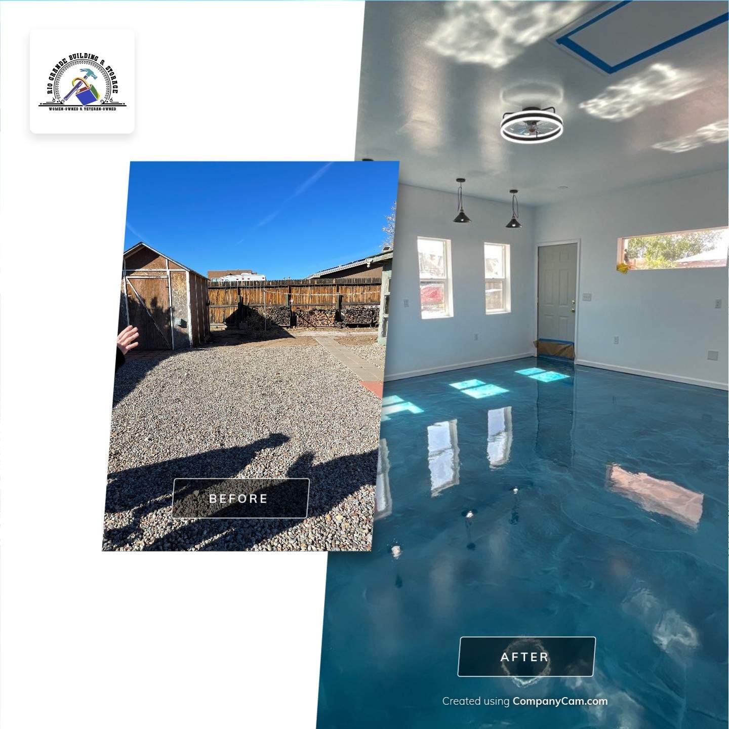 Our client came to us wanting to build an art studio in her backyard and we knew we were the right people for the job. Our clients main concern was creating a functional space with good lighting so we made sure to include lots of windows and overhead lights. We added a bathroom and a large washout sink so she would have plenty of space for her projects. We wanted to make sure that we chose the correct kind of floor for an industrial space like this so we installed and epoxy floor that is not only functional but adds a creative touch to an otherwise simple space. That will surly get the creative juices flowing! Check out the full process of how we build from the ground up!