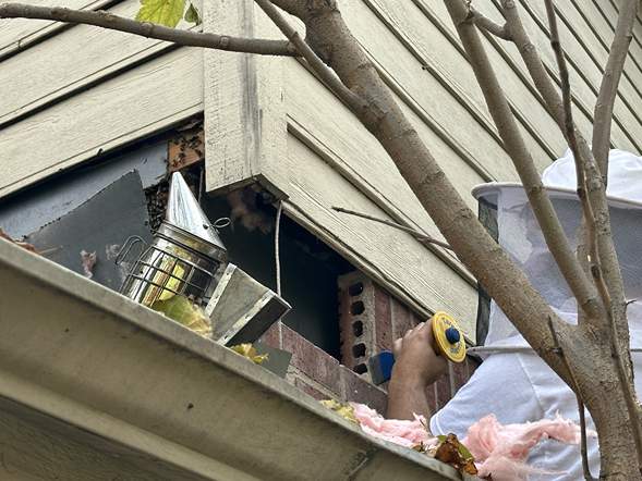 The home owner was a fearless firefighter.. when it came to fires. Bees? Not so much!