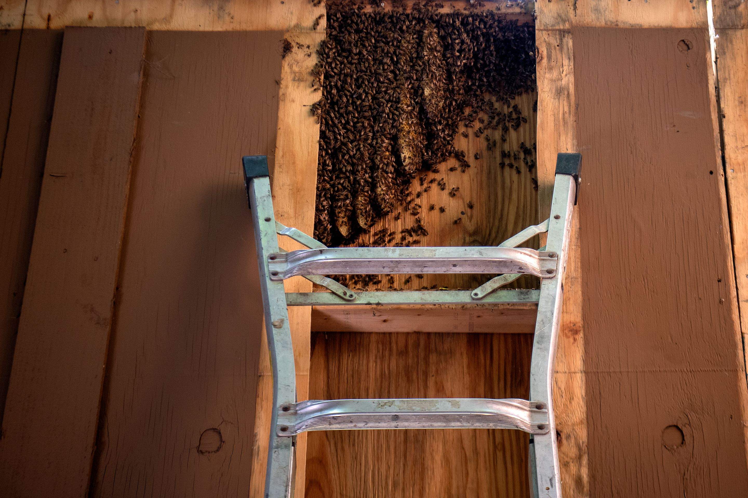 We cut this colony directly into a portable hive.