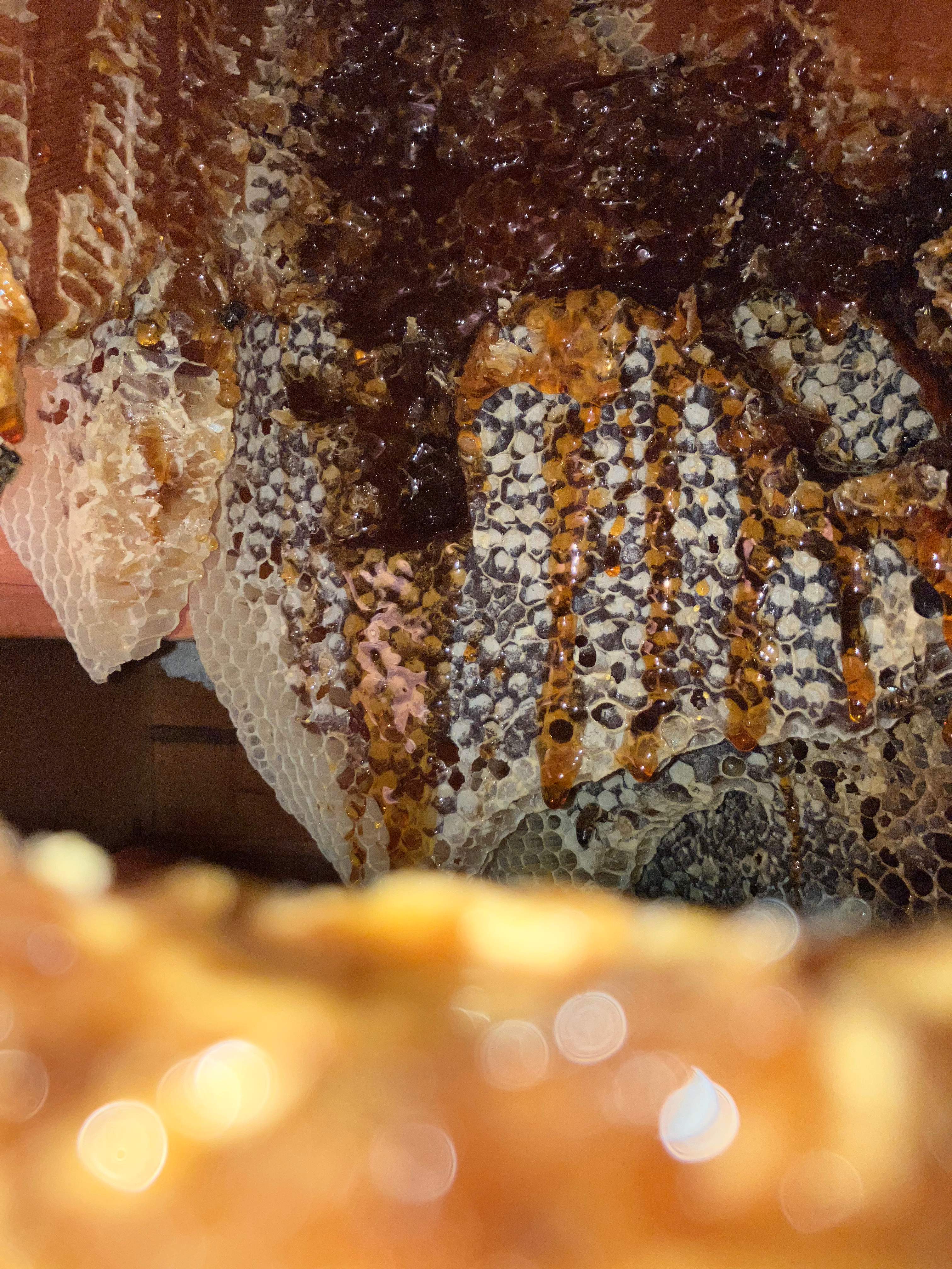 This home owner either poisoned the bees or they died on their own. Once the honey was left unattended, it began dripping down the interior wall. Another reason you should NEVER hire a pest control operator or wait for the colony to leave or die on its own. Because then you're left with the sticky mess afterward.