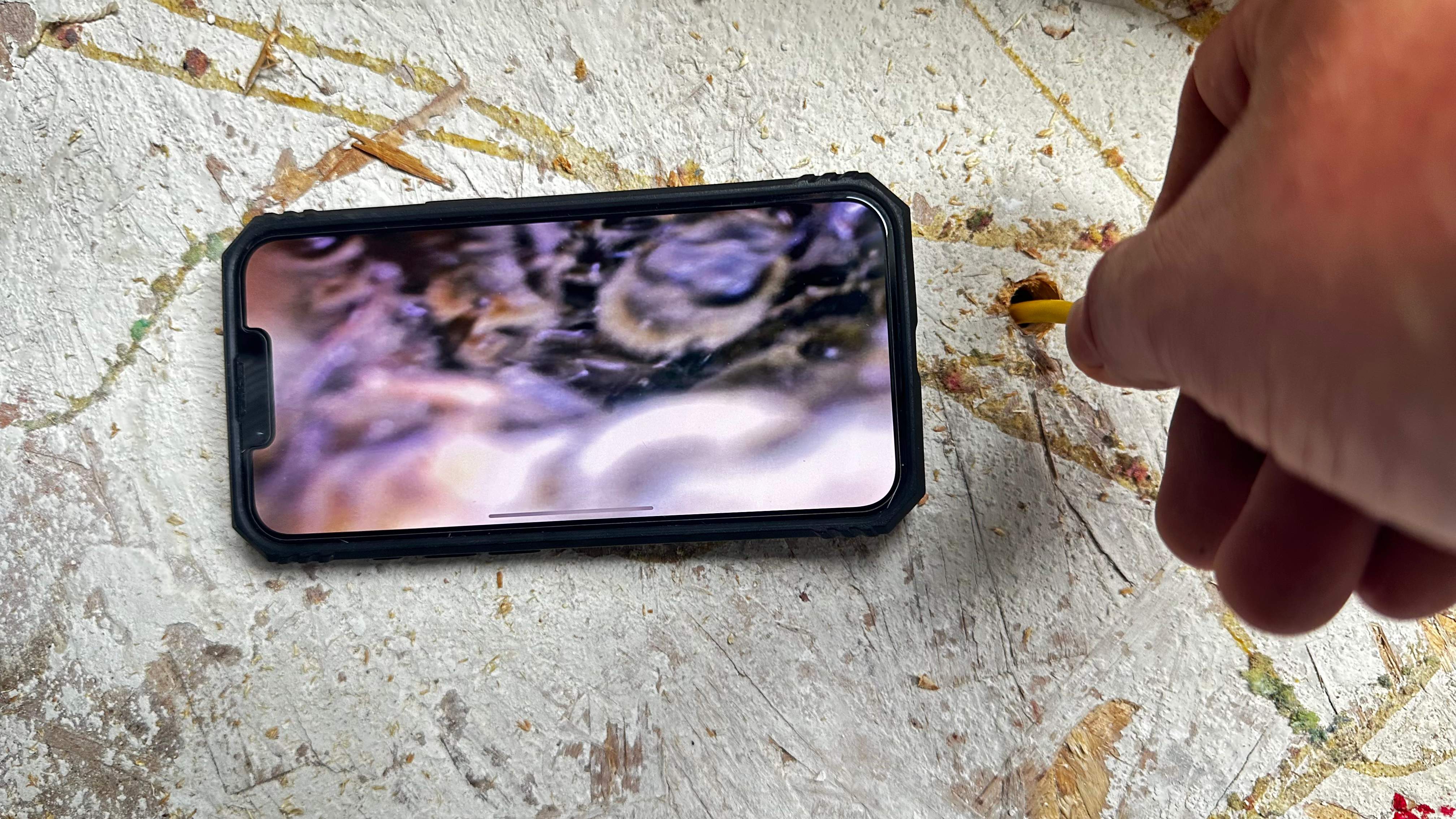 Bees between floors. The homeowner noticed them as they were moving in. We realized there had been bees in the past and the space had not been sufficiently stuffed.. we spare no expense to do the job right. Our visit would have not been necessary if the first remover had just used another $20 in insulation to properly stuff the cavity. Sure is fun using an endoscope to find bees.