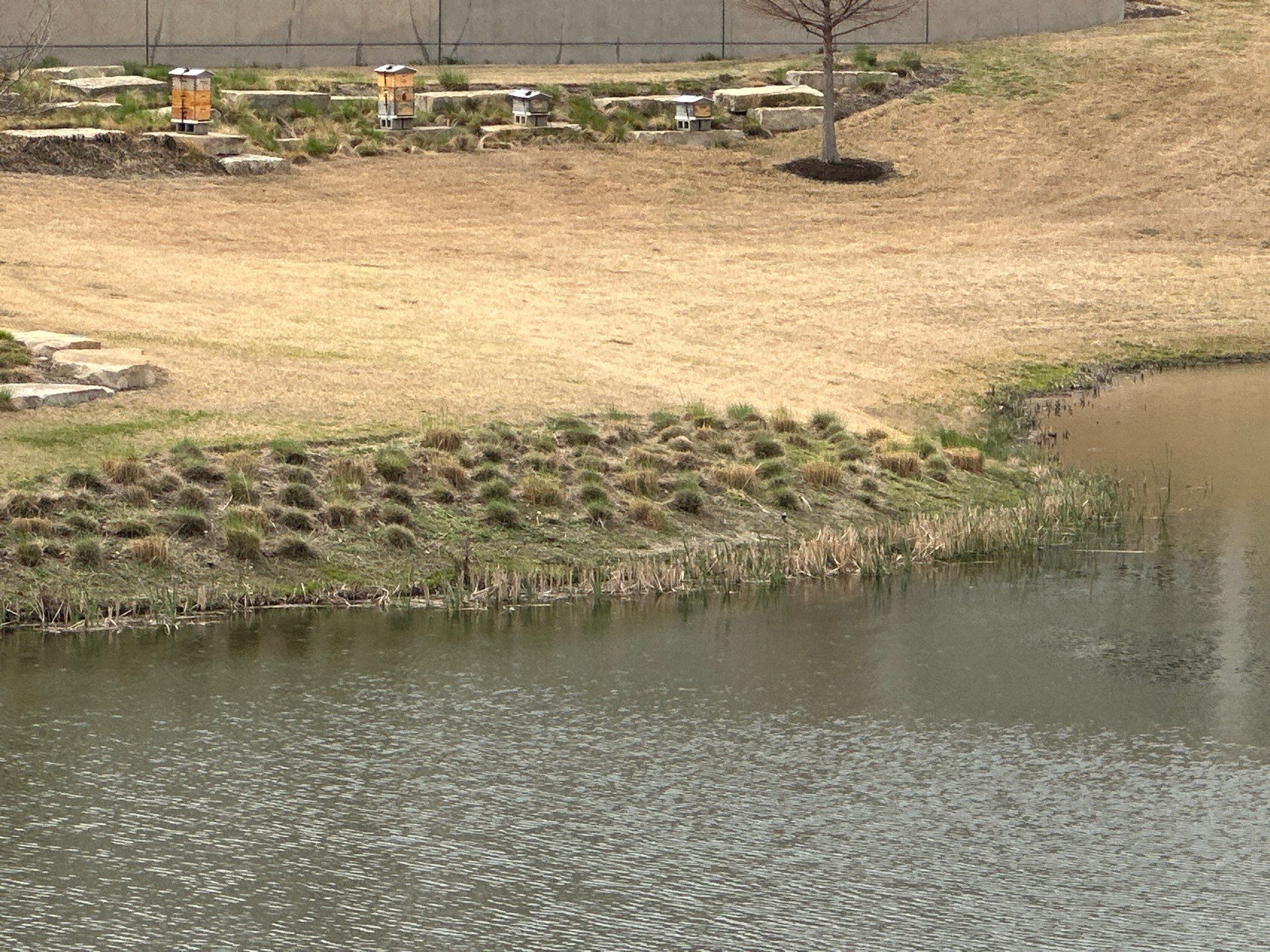 This financial corporation has a wonderful pond and greenspace which the employees enjoy when on lunch. And the bees enjoy it all day long!