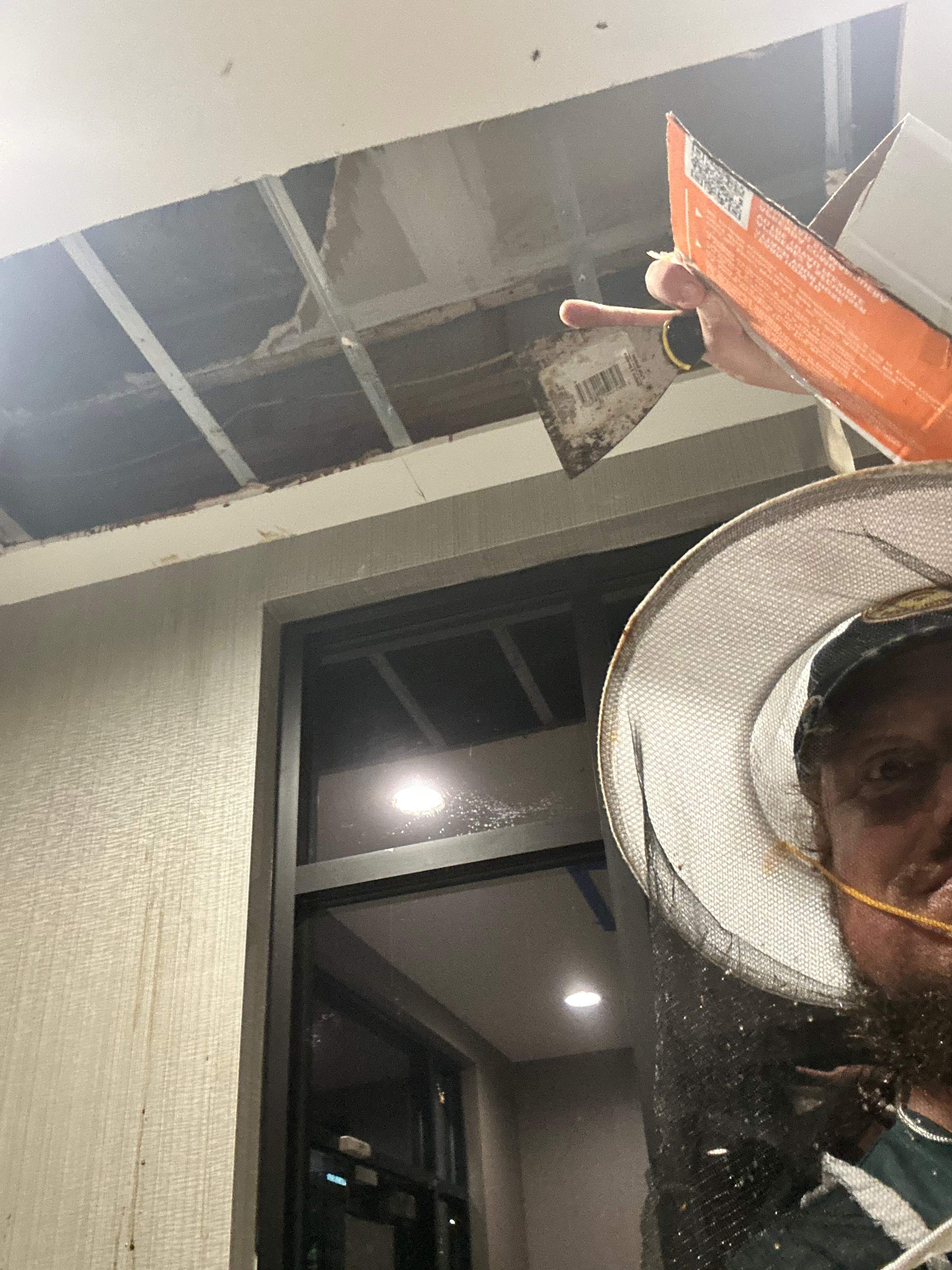 Bee had built above floating ceiling up into the parapet wall. A brutal, sting-filled removal. Found Ms. Queen waiting on the sidewalk while wrapping up!