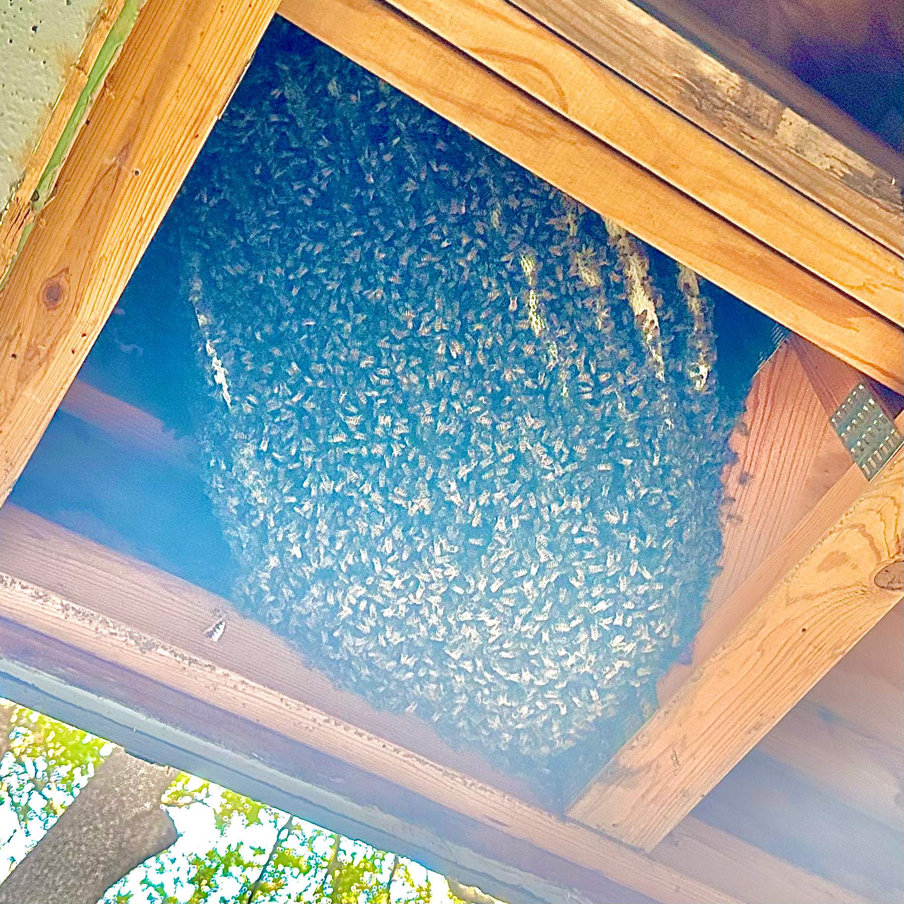 Nature's beauty expressed through geometry. Behind the newer nest ball was the leavings of a collapsed colony. Bees love moving in to a place that was previously occupied.