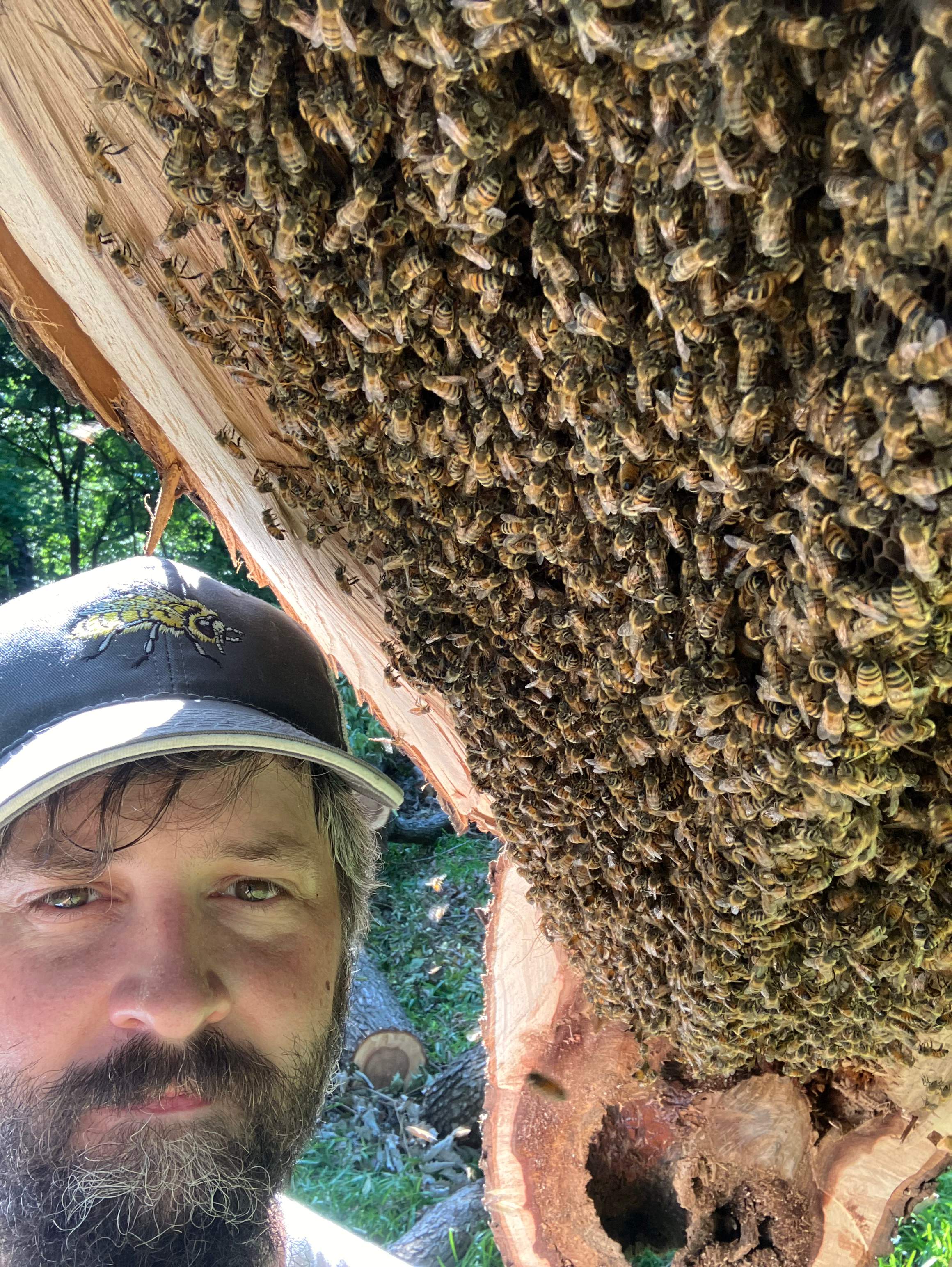 A storm split this tree giving us perfect access to a HUGE colony.
