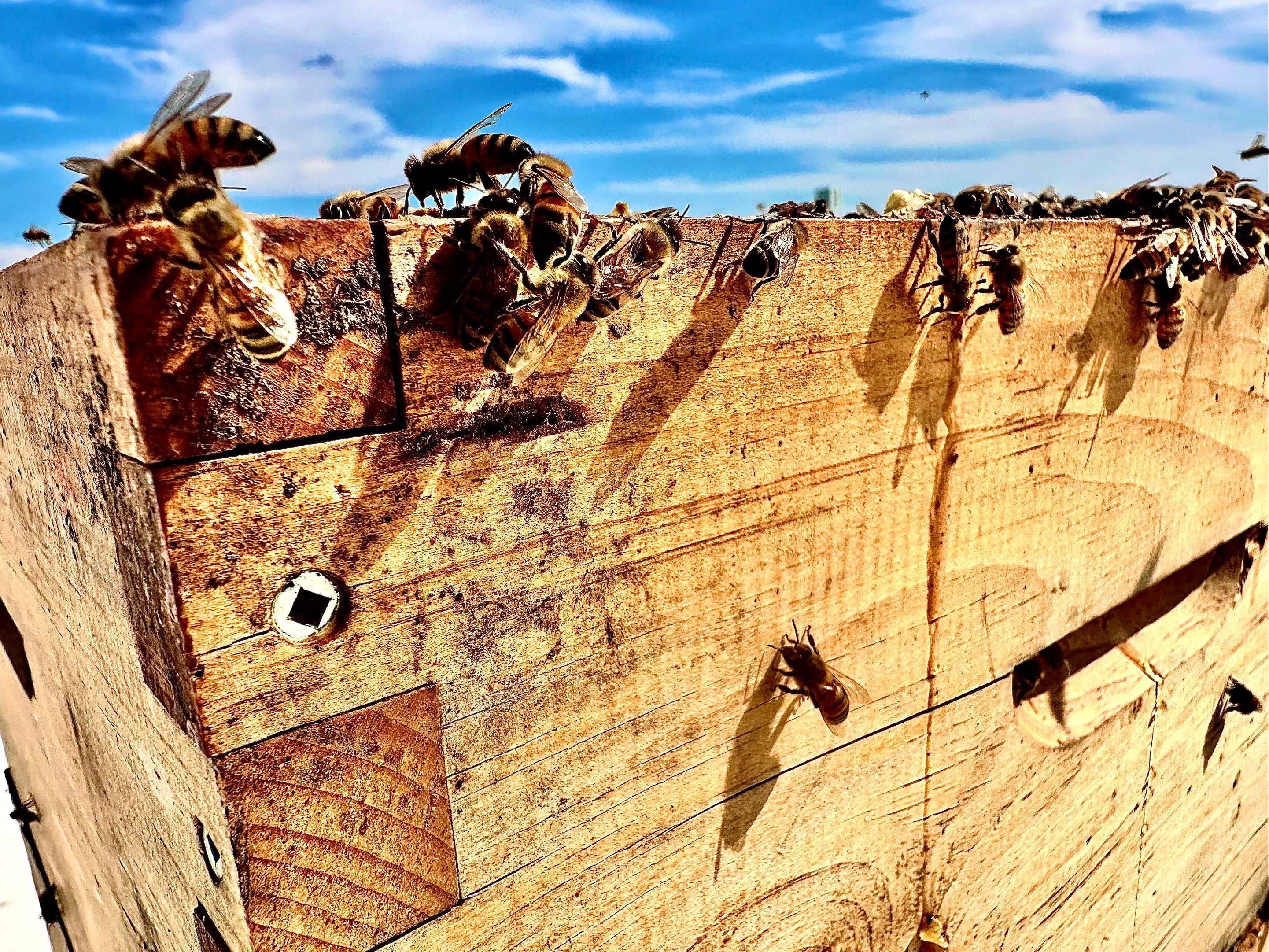 Another top-of-the-metroplex colony! This honey bee colony is incredibly healthy and packs in the honey.. thank goodness there are ZERO stairs required for this job. It miraculous the bees can make their way to and from their hive with the winds, yet they have THRIVED since we installed their home 16 stories up.