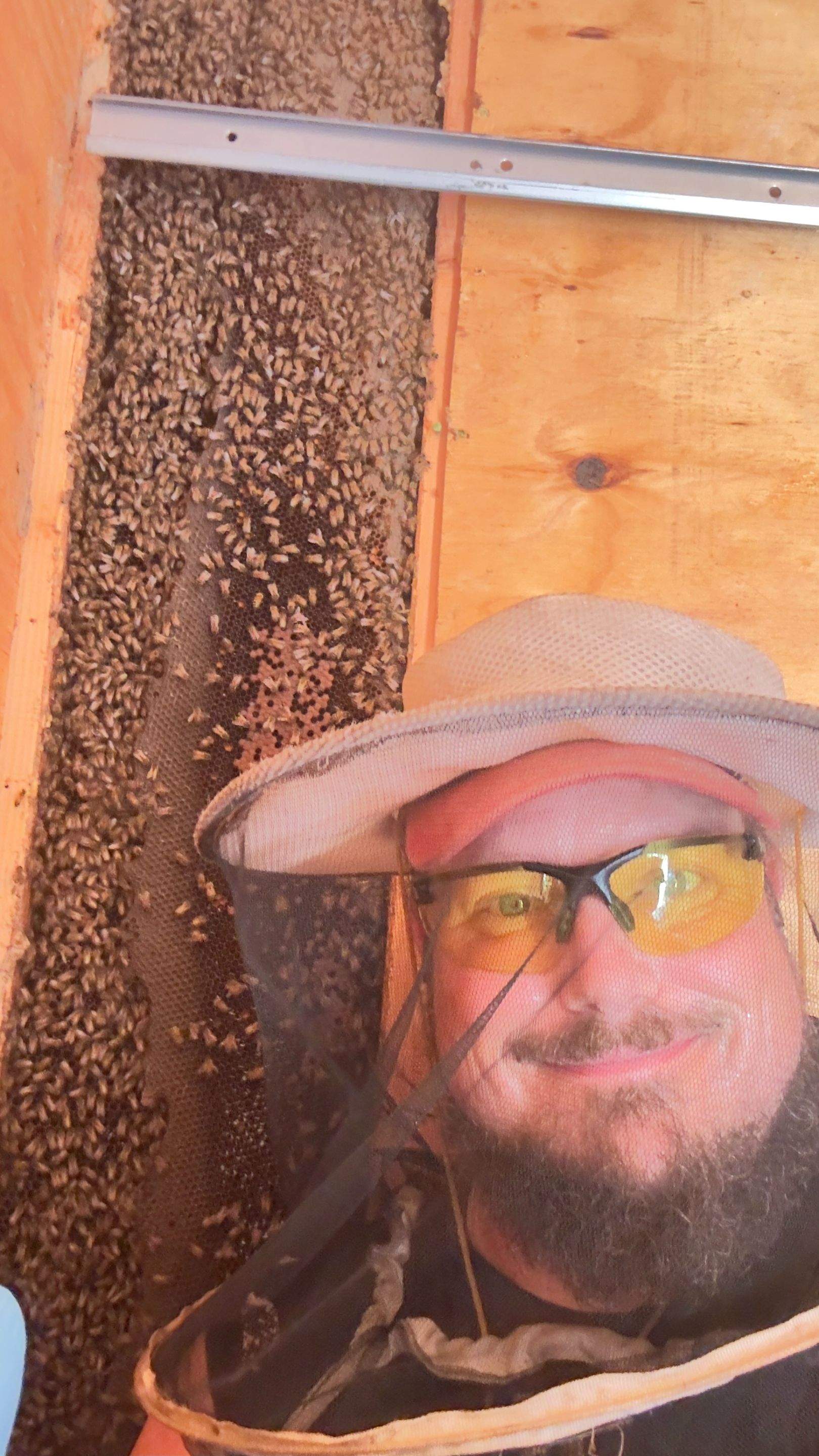Since shed walls are not insulated bees can build comb in them. These ladies built a nest taller than the average person!
