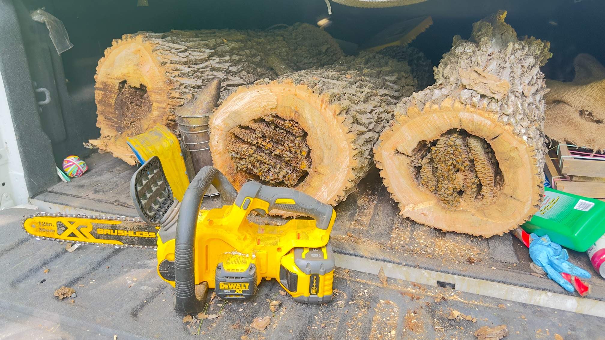 It's always the best when the tree is on the ground and we can cart off the whole trunk and relocate the entire colony as-is to our apiary.