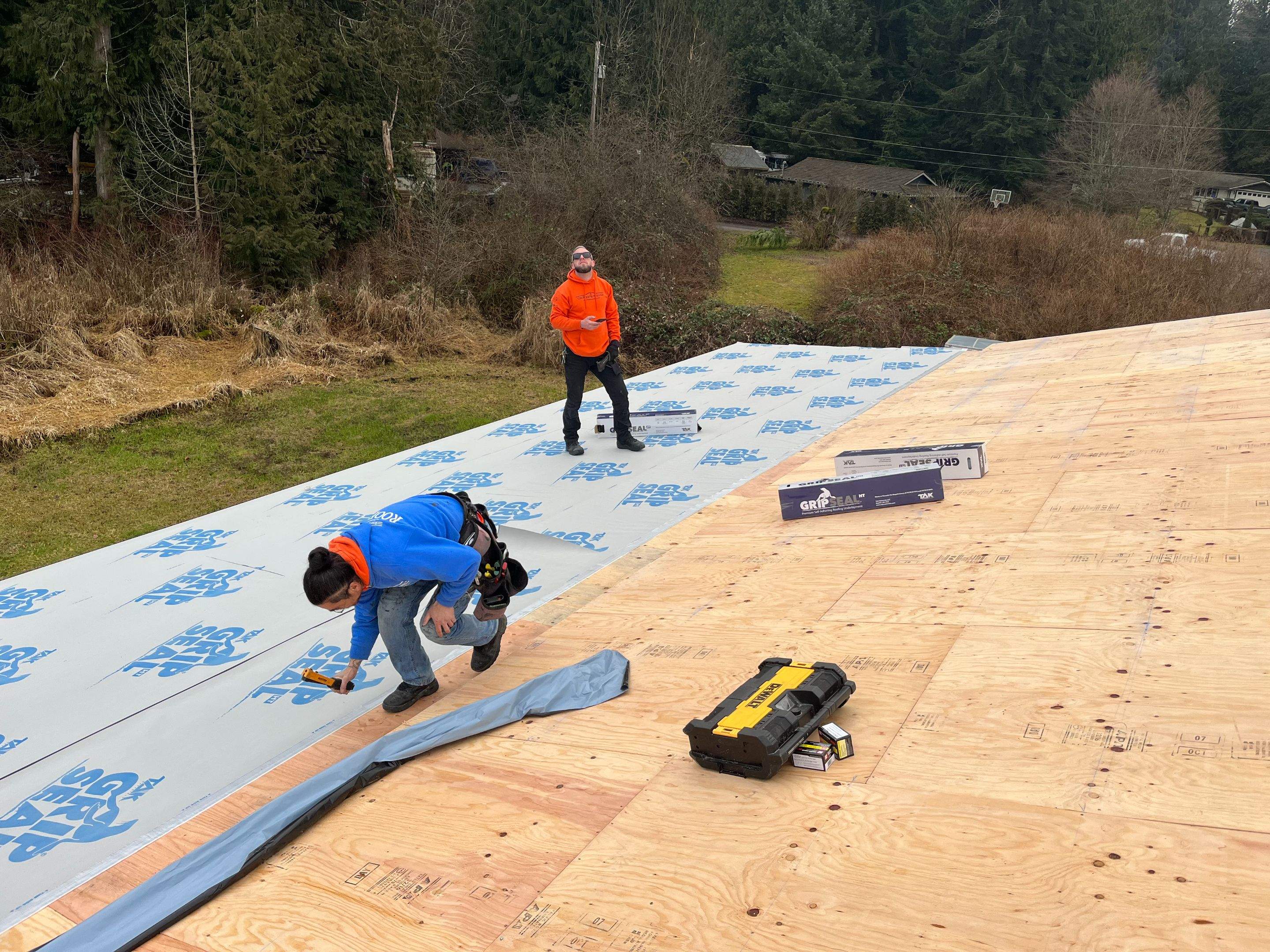 Metal roof on shop, asphalt roof on house, new deck on house, too.