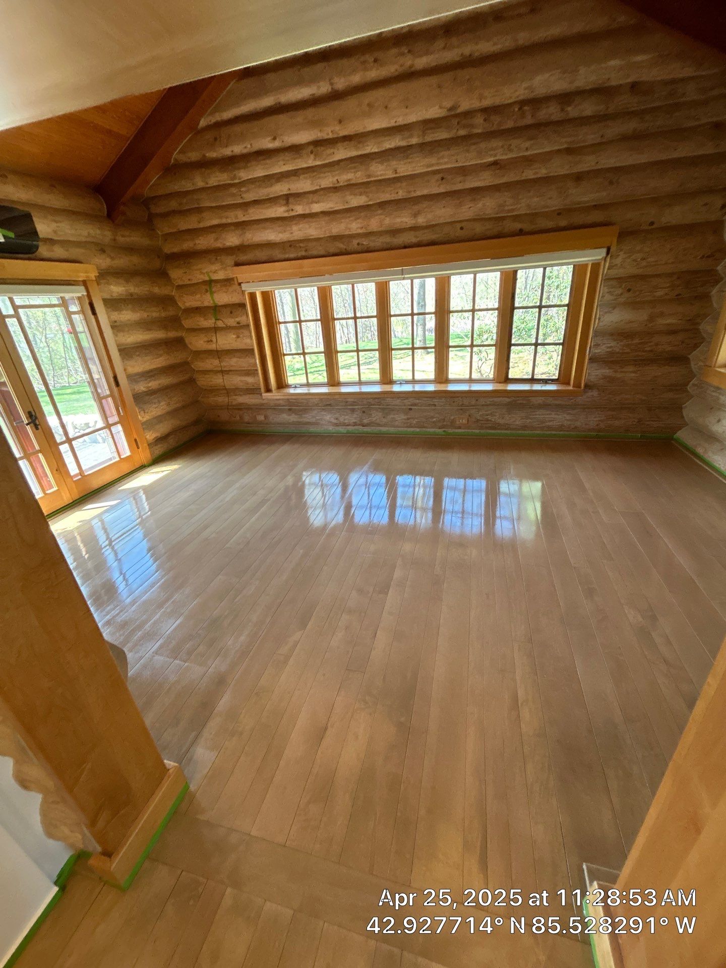 In this stunning log cabin, we refinished existing maple floors and completed water damage repairs with prompt, attentive service. The result: revived wood, renewed beauty, and a space ready to be enjoyed for years to come.