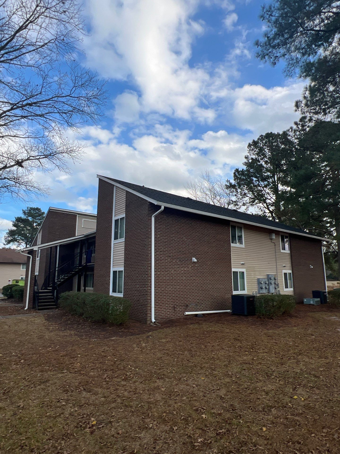 Completed comprehensive exterior improvements at The Oaks Apartments, including full roof replacements, targeted siding repairs, and replacement of damaged gutter and downspout systems. Work included removal of aging roofing materials, installation of new underlayment and architectural shingles, repair of deteriorated sheathing, and roof-to-wall sealing to ensure long-term weather protection. Siding repairs consisted of removing damaged panels, replacing with matching materials, and properly installing moisture barriers where needed. Gutter and downspout systems were replaced or repaired to restore proper water flow and prevent drainage issues around the buildings. The project improved structural integrity, enhanced curb appeal, and extended the overall lifespan of the property’s exterior envelope.