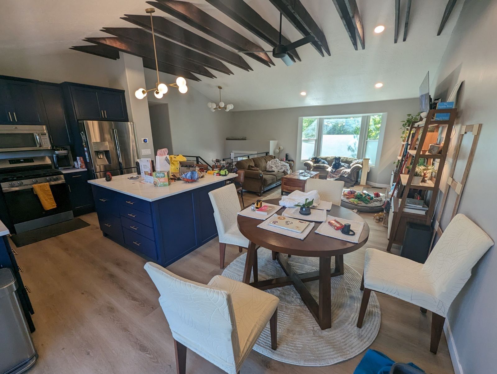 Removed center wall dividing kitchen and family room. Created an open floor plan. All new flooring, trim, and kitchen cabinets.