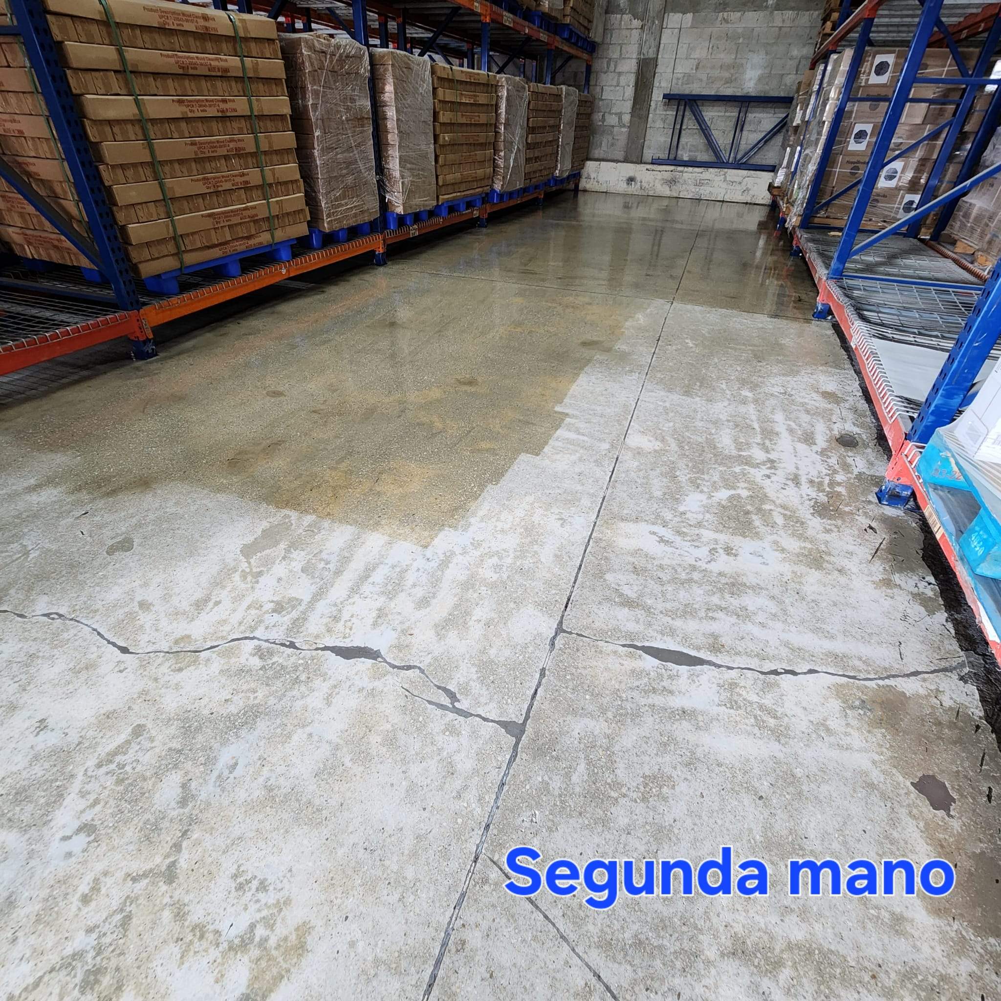 This warehouse was repaired from a large number of cracks and holes, it was grinned to expose the aggregate and remove the top coat and then sealed with commercial grade acrylic sealer to make cleaning easier and prevent absorption of stains.