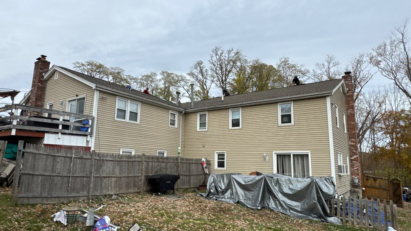 This project involved a full roof replacement for a duplex home experiencing multiple active leaks. Rather than performing isolated repairs, our team installed a complete GAF residential roofing system, providing long-term protection and improved performance. The project was completed with new complimentary gutter installation to enhance water management and prevent future issues. The homeowner was extremely satisfied with the results and left a 5-star review upon completion.