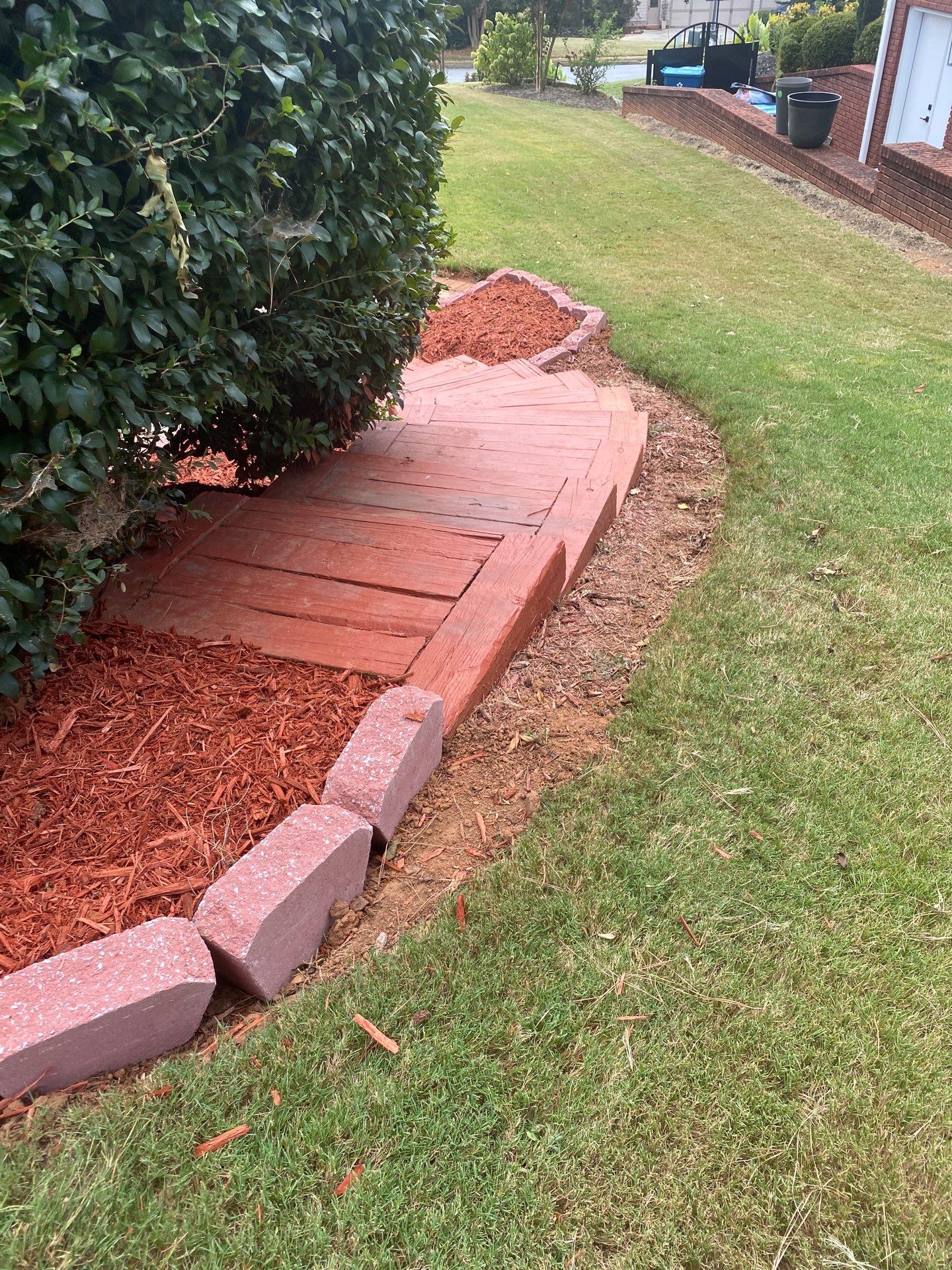 We Installed Wall Block and level and Mulch Installation we digg to a level for the wall bricks