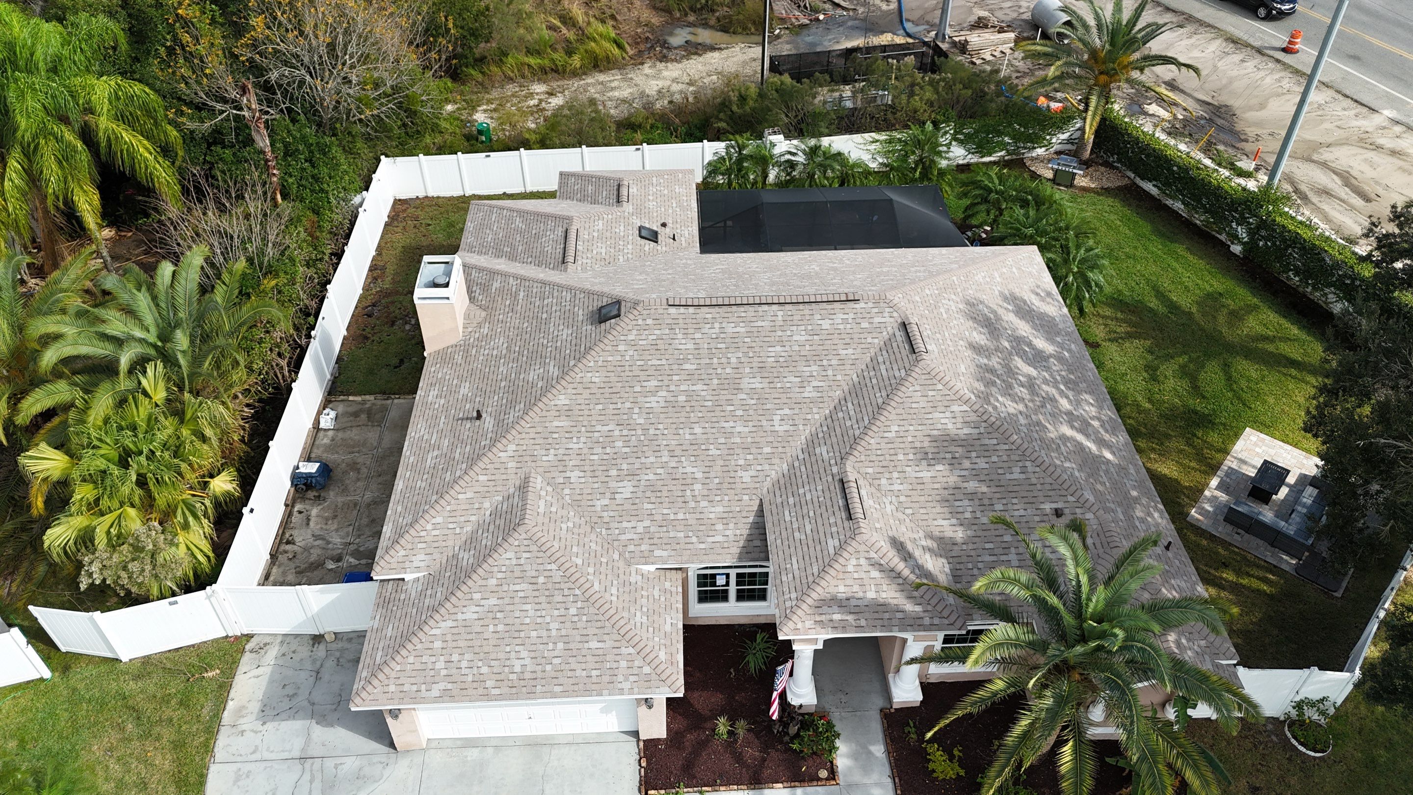 Shingle Masters RoofingRoof replacement completed in Land O’ Lakes, FL. The existing roof was removed and replaced with Owens Corning Oakridge shingles in Beachwood Sand, giving the home a refreshed look and reliable protection. Completed by Shingle Masters Roofing—contact us today for a free roof inspection or quote.