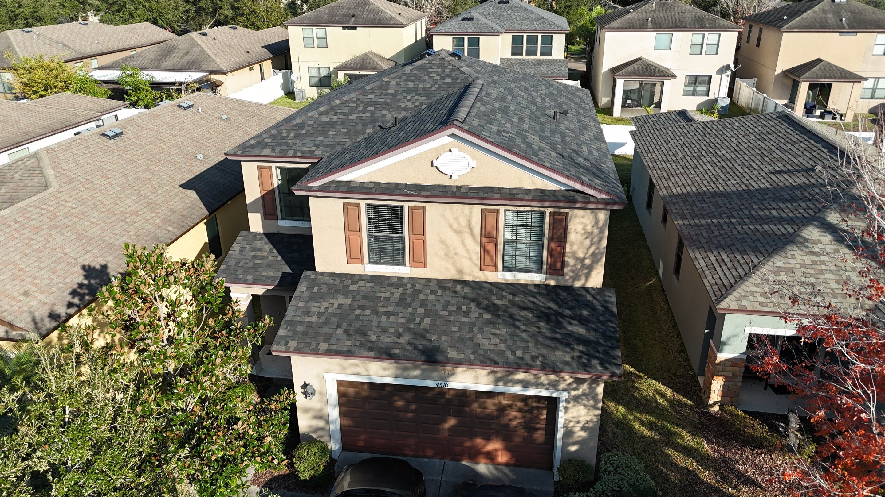 Shingle Masters RoofingRoof replacement completed in Riverview after the home sustained storm damage during Hurricane Milton. The roof was replaced using Owens Corning Duration shingles in Black Sable, restoring strong, reliable protection and a bold, updated look. Brought to you by Shingle Masters Roofing—contact us today for a free roof inspection or quote.