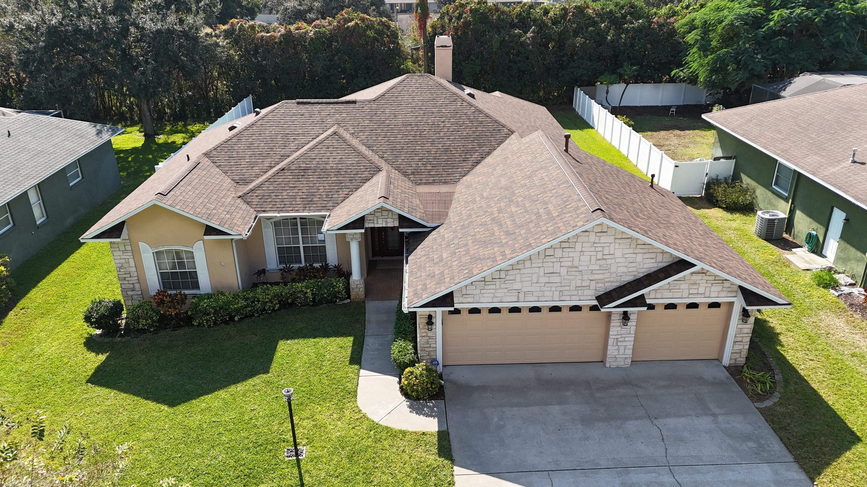 Shingle Masters RoofingFull shingle roof replacement completed in Valrico, FL. We removed the aging roof system and installed new Owens Corning Duration shingles in Brownwood. The new roof delivers improved durability, enhanced wind protection, and a warm, refreshed look for the home. Shingle Masters Roofing is committed to high-quality craftsmanship and reliable service on every project. If you need a roof inspection, repair, or replacement, contact us today for a free inspection and quote.
