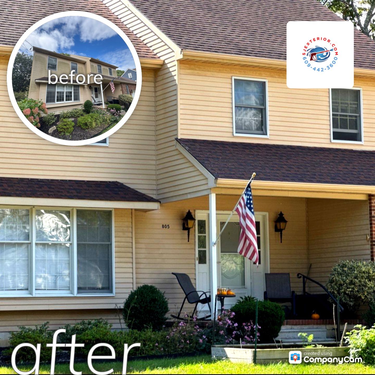 Applications used were Pressure Washing (concrete and walkways) & Softwash (House and sections of front roof). Started project by tapping up exterior outlets/lights and watering all vegetation to give a good drink before starting the process to clean all exterior surfaces.